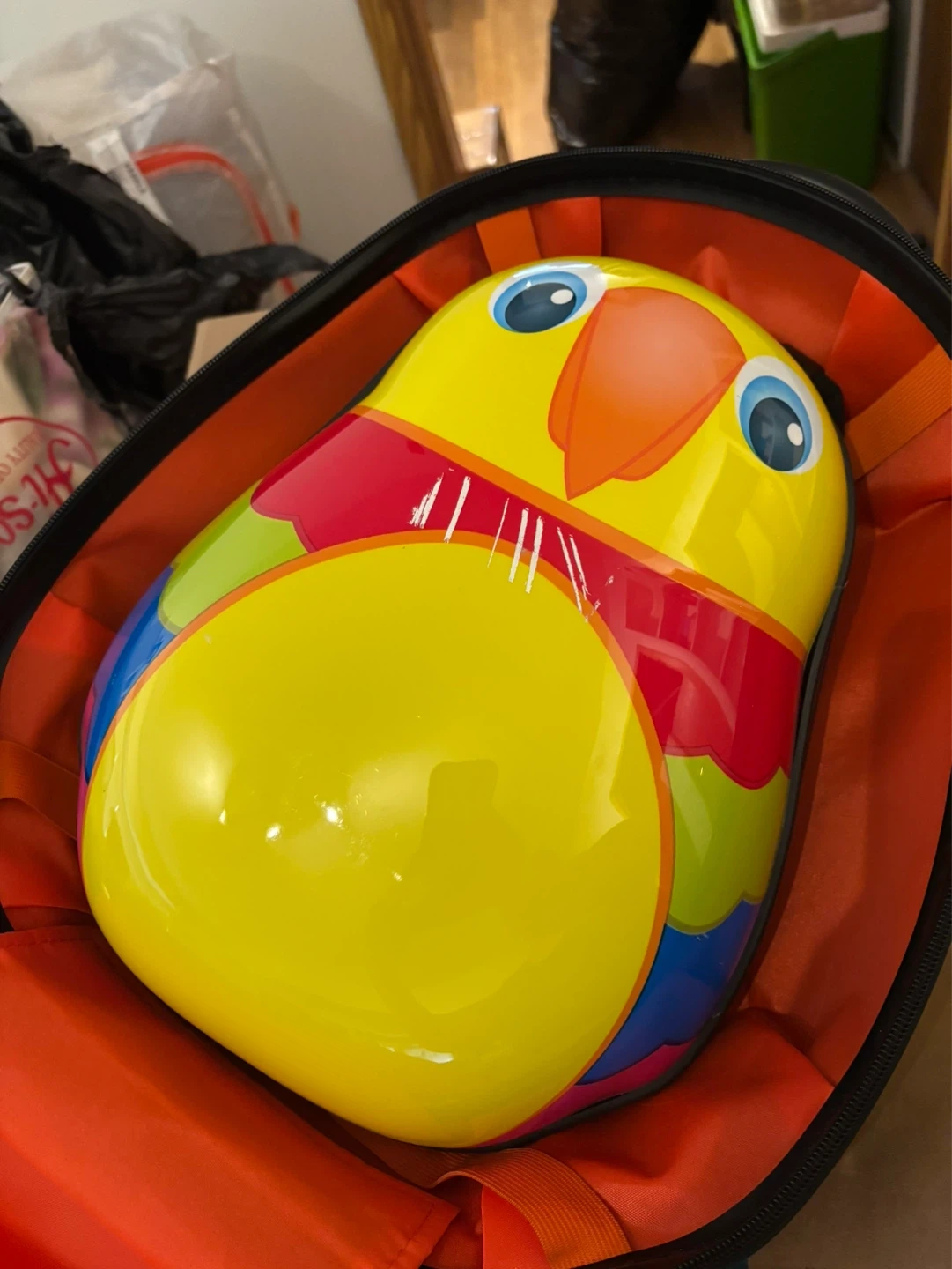 Cute yellow bird design kids' carry-on luggage. It's made of a durable shell and features smooth-rolling wheels. Perfect for little travellers to pack their essentials!