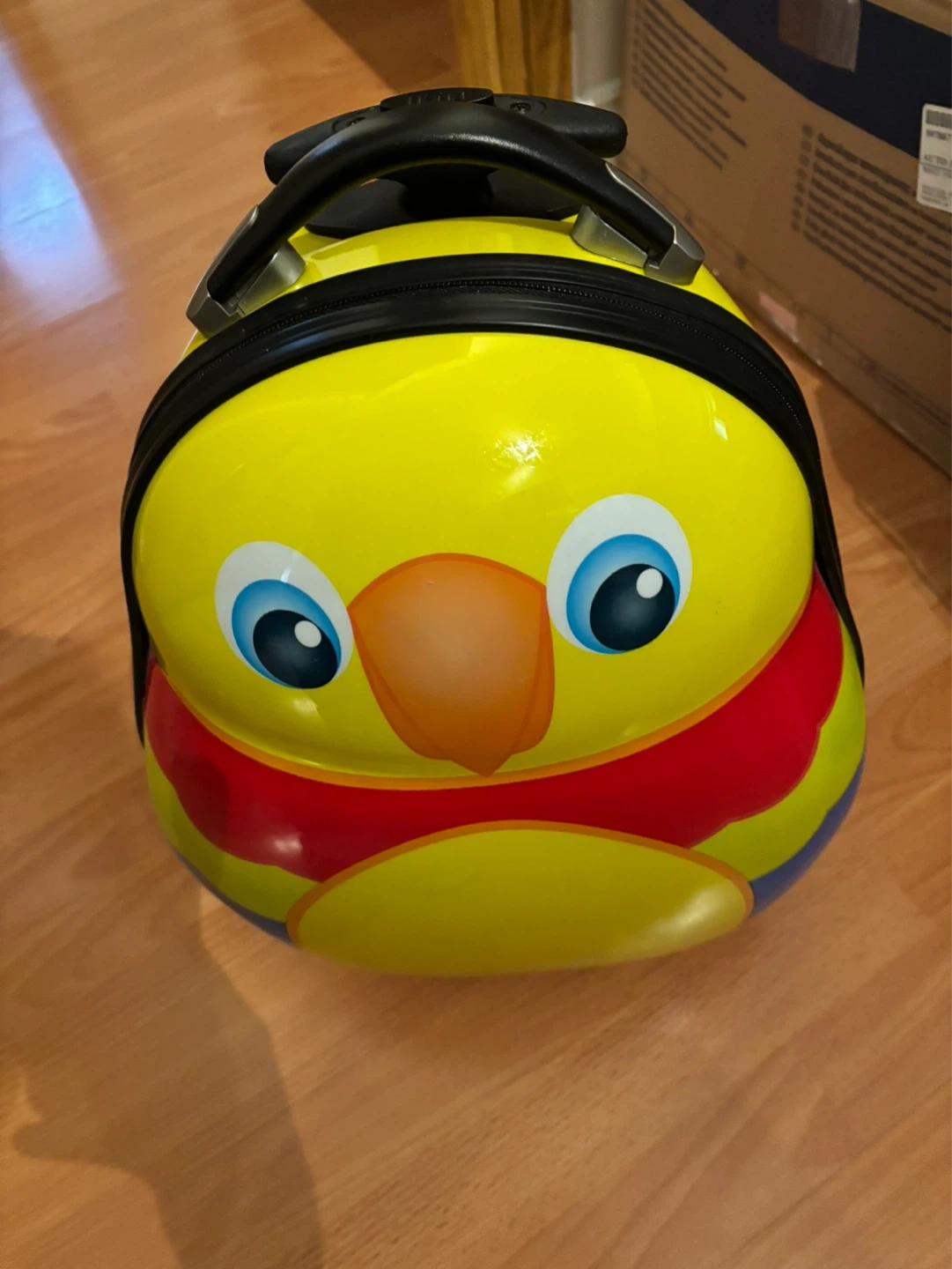 Cute yellow bird design kids' carry-on luggage. It's made of a durable shell and features smooth-rolling wheels. Perfect for little travellers to pack their essentials!