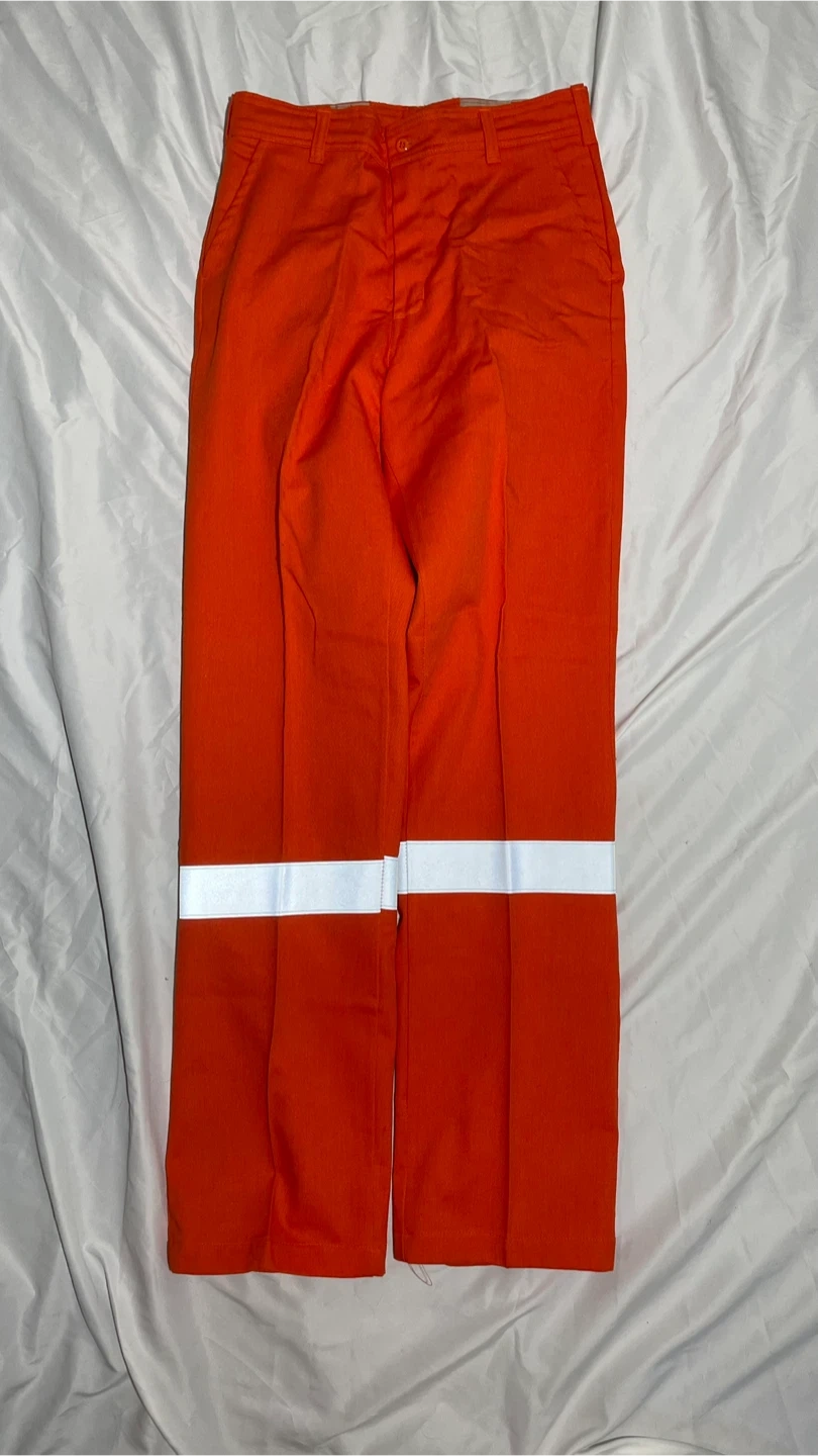 Bright orange work pants by Armadillo. Durable and flame-resistant fabric. 30” waist 34” long (listed as 34 but measures more like a 35/36) easy to hem up Almost new, never worn to work/job site