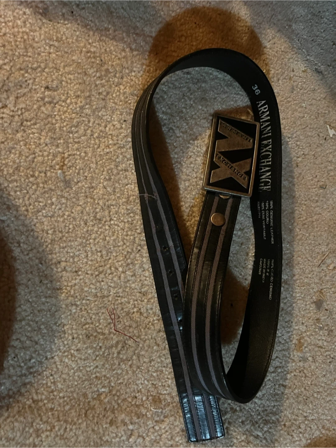 10Armani Exchange belt in size 36. It features a sleek design with the AX logo on the buckle. A stylish accessory to complete your outfit!