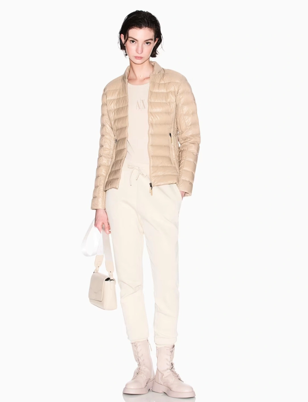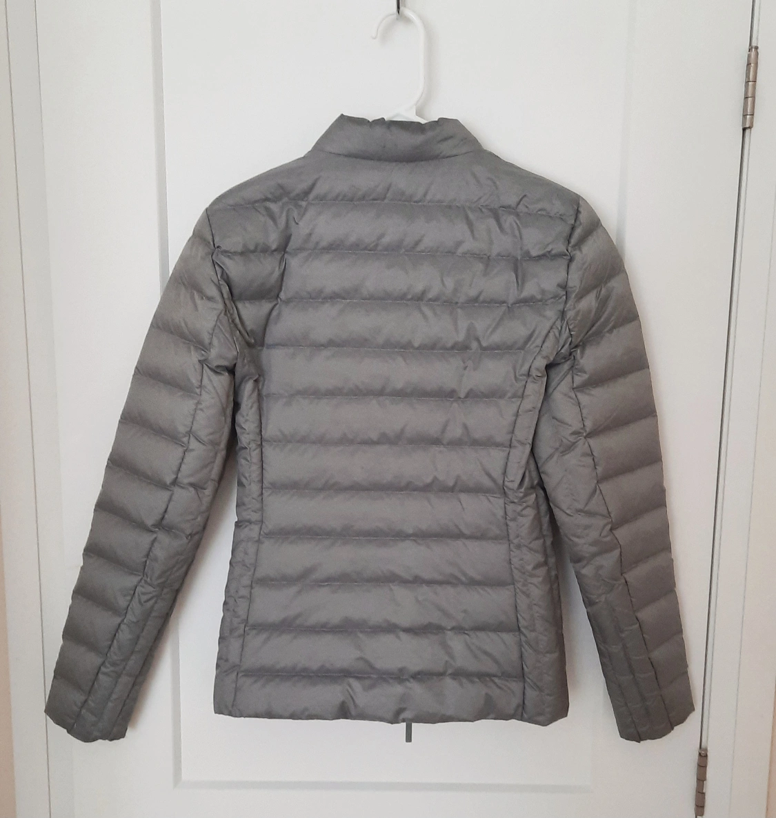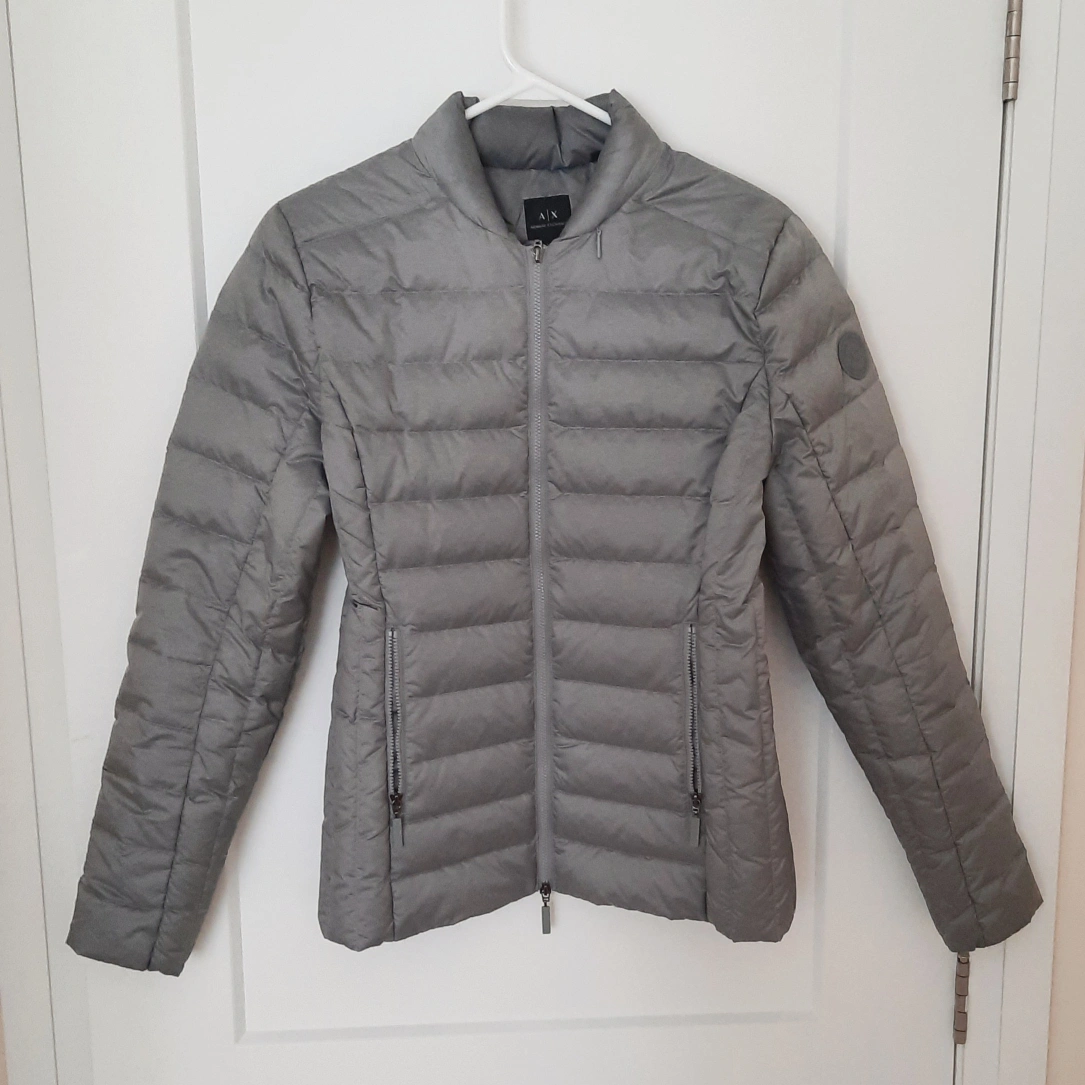 Armani Exchange light jacket with hood Filling: 80 % duck down, 20 % duck feather Light grey-green color Worn only 2-3 times Retail price 220 CAD