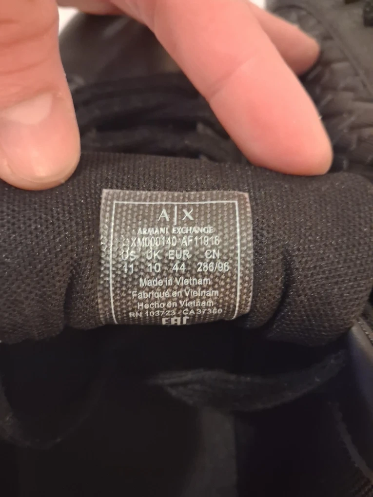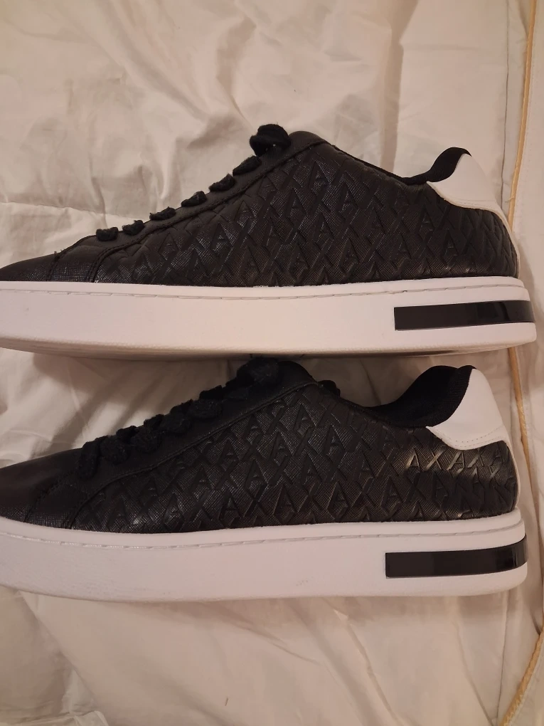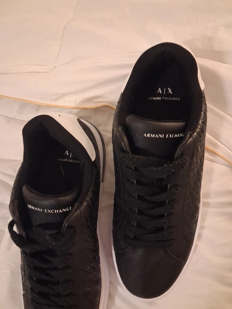 60Selling a pair of Armani Exchange sneakers in black! They are in great condition and have a cool patterned design. The size is US 11. wore twice bought them for 300 in metro town i want 175 obo