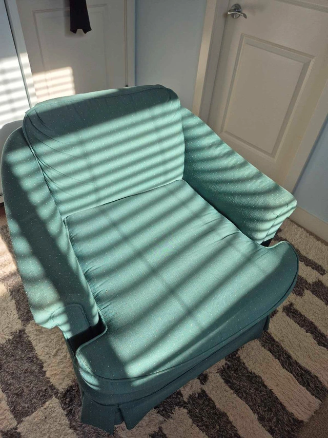 This comfortable, used armchair features a sturdy frame and a soft, patterned upholstery, perfect for adding a cozy touch to any room. The chair shows signs of wear consistent with age, which only adds to its vintage charm. * Classic armchair design * Comfortable seating * Durable construction This armchair is priced to sell at $75, reflecting its condition and the going rate for similar items on Kijiji. If the ad is up, it's still available, so no need to ask! Don't miss out on giving this chair a new home—it's ready to be whisked away and add a splash of character to your space.