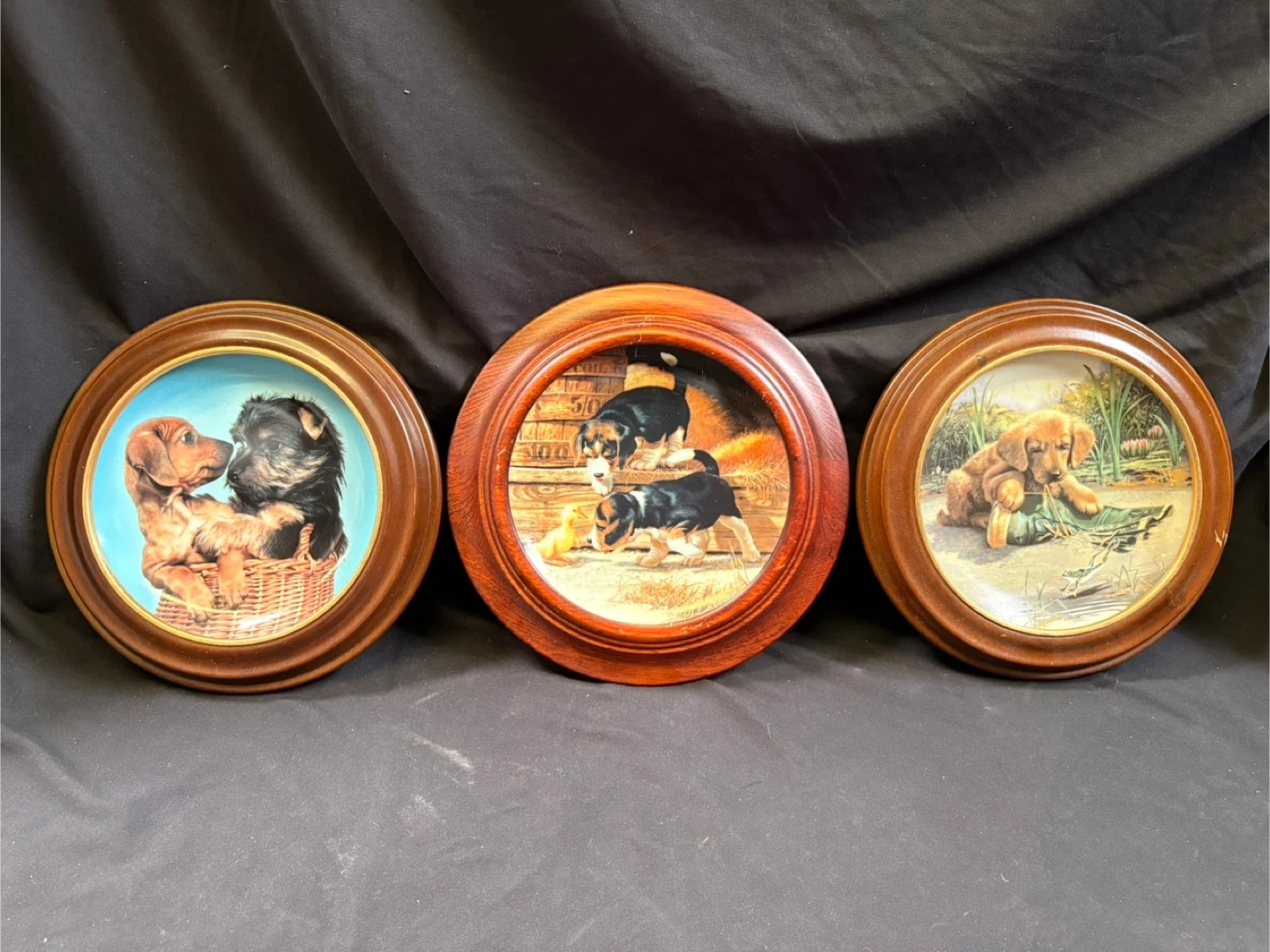 1000+Good condition Armstrong's 'Puppy Pals' Collector Plates (Set of 3) Selling a set of three charming collector plates from Armstrong's 'Puppy Pals' series! These plates feature adorable puppy scenes in wooden frames. Each plate is a numbered edition of 10,000, making them a unique addition to any collection. A delightful piece of art on porcelain! Measurements in last couple of pics $30 Pick up Victoria Park & O’Connor area