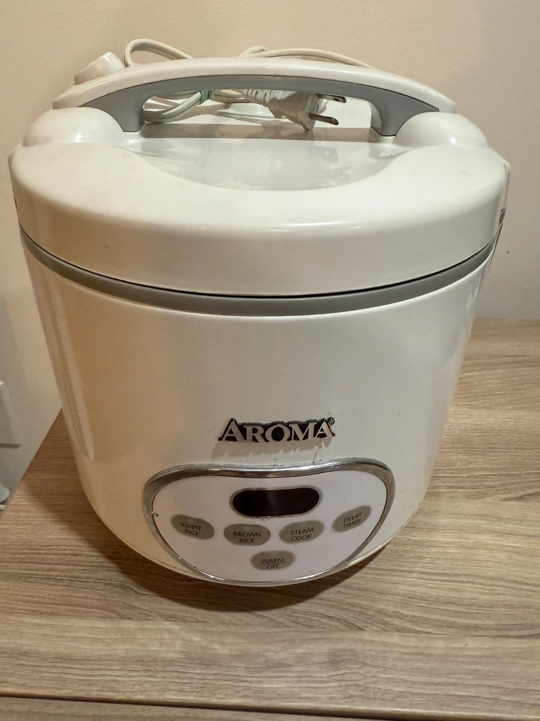 114Selling a used Aroma rice cooker. It has settings for white rice, brown rice, steam, and warm. It also has a delay timer. Perfect for making rice for the whole family!