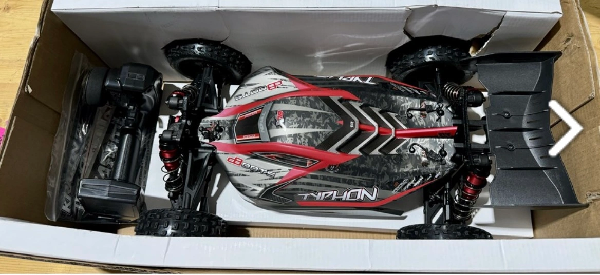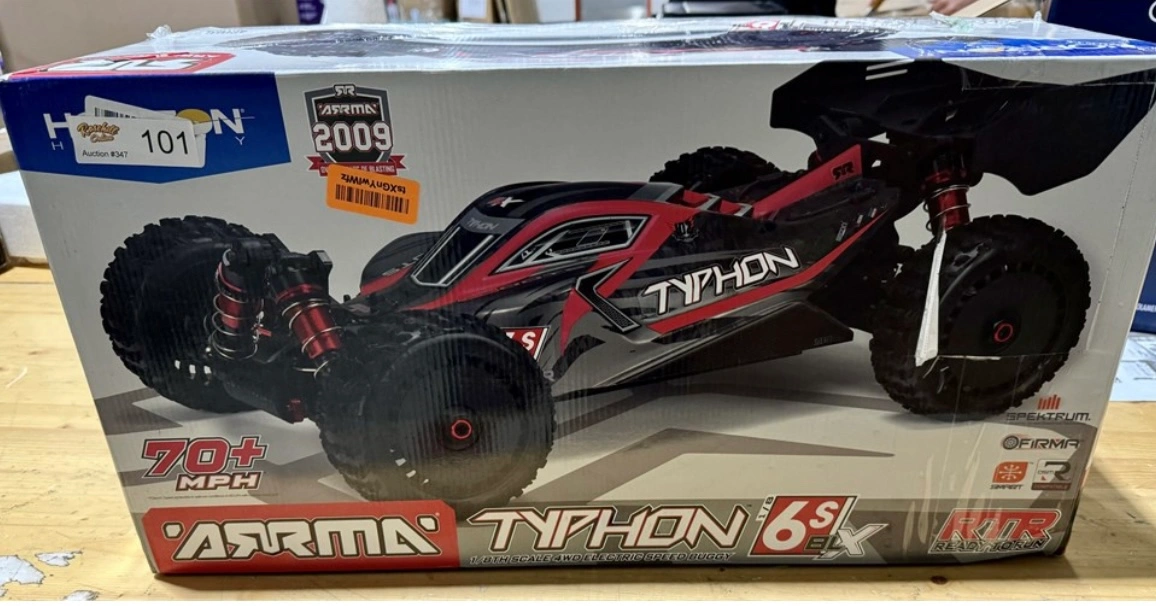 Brand: ARRMA Color: Black Edition: 106 Features: Updated with Spektrum components and Smart compatible 70+ MPH (113km/h) speeds achievable in optimum conditions using a 6S LiPo battery and optional pinion gear, not included EXB compatible front brace Large volume waterproof receiver box Ready-to-run - just install a charged 4 cell or 6 cell LiPo battery of your choice Binding: Toy Release Date: 24-09-2022 model number: ARA8606V5 Part Number: ARA8606V5 Details: IntroductionExperience a thrilling new level of bashing performance with the 1/8 scale, ready-to-run ARRMA® TYPHON™ 6S BLX 4WD Speed Buggy. Designed fast, designed tough, and now outfitted with a versatile Spektrum™ 3-channel radio system and Firma™ brushless electronics, it's all set for fast action on all terrain, in all conditions.FeaturesReady-to-runSpektrum™ SLT3™ 2 EAN: 5052127038836 Package Dimensions: 26.1 x 14.3 x 10.1 inches Brand new, never used. Delivery available for everywhere upon reasonable fee according to your location.