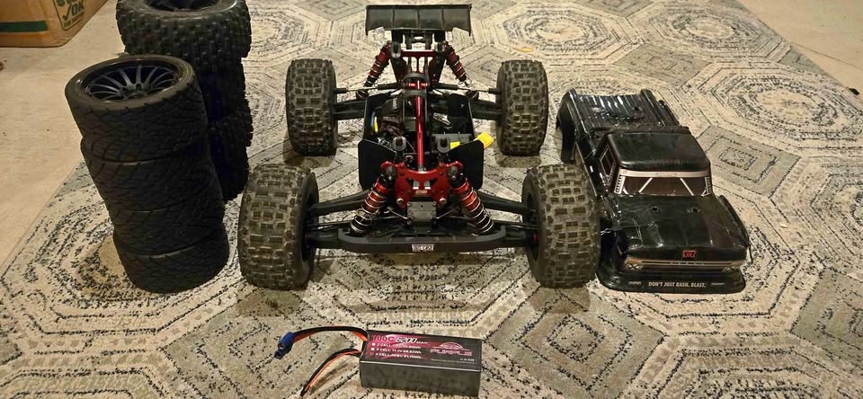 10Good condition Arrma Outcast EXB comes with new 4s 6200 mah battery, tires, 6s 1800 kv motor, and 180 amp ESC. No controller, bind with your Spectrum.