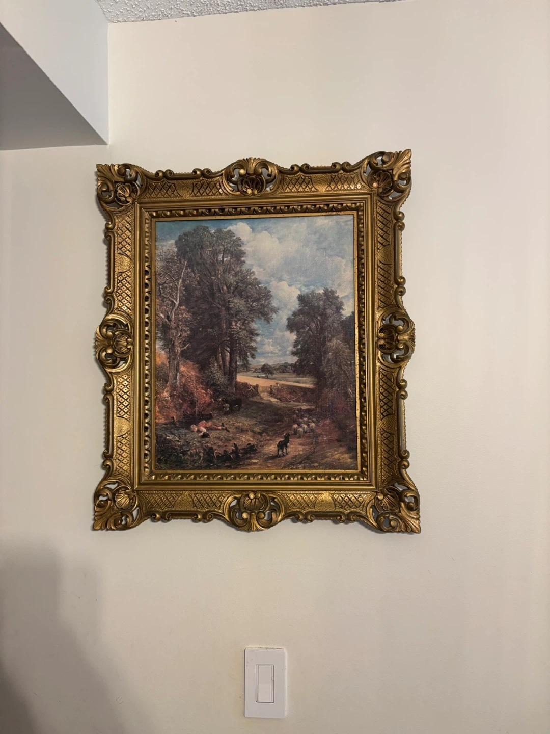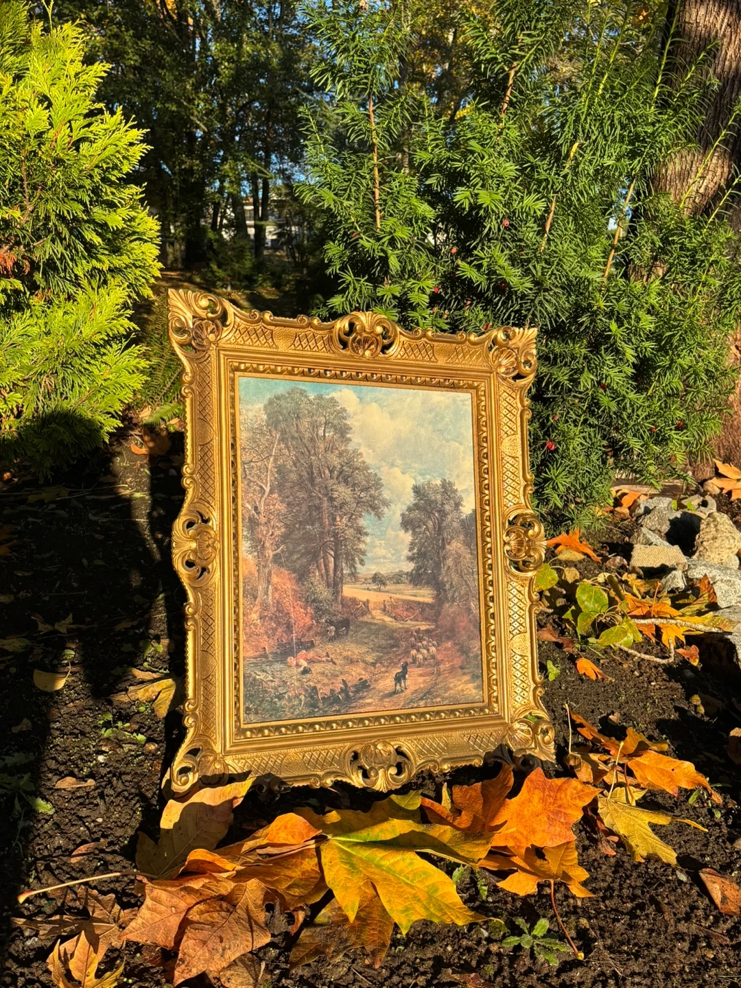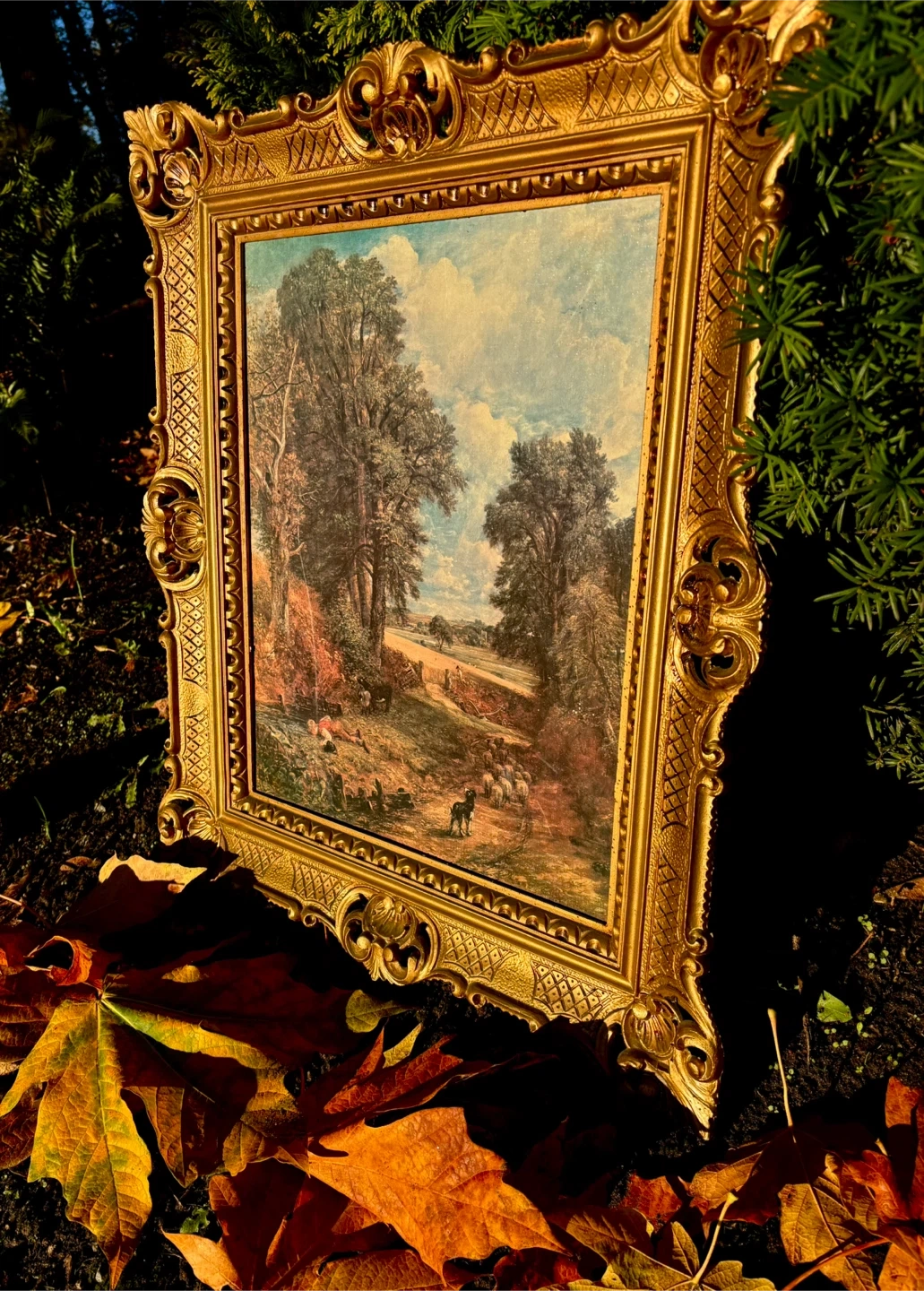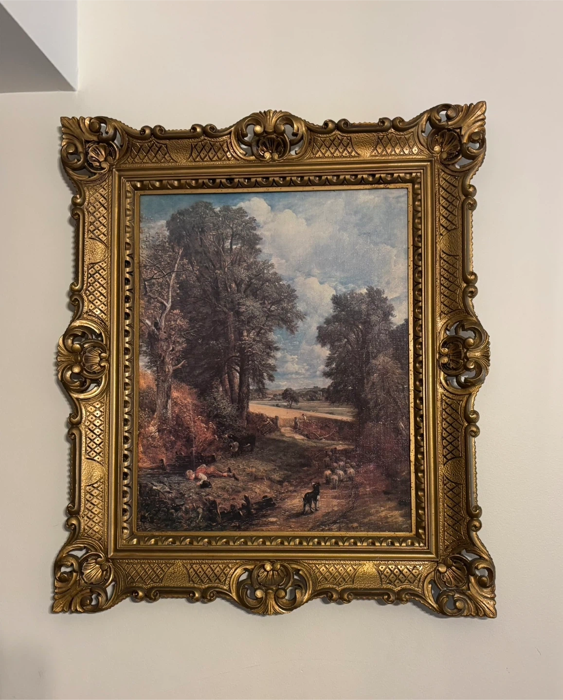 Reproduction of John Constable's 1826 "The Cornfield" Excellent Condition - Antique lightweight ornate gold Frame & canvas Print: Made in Italy Large Size: 23.5" x 27.5" (print is 15" x 19" )