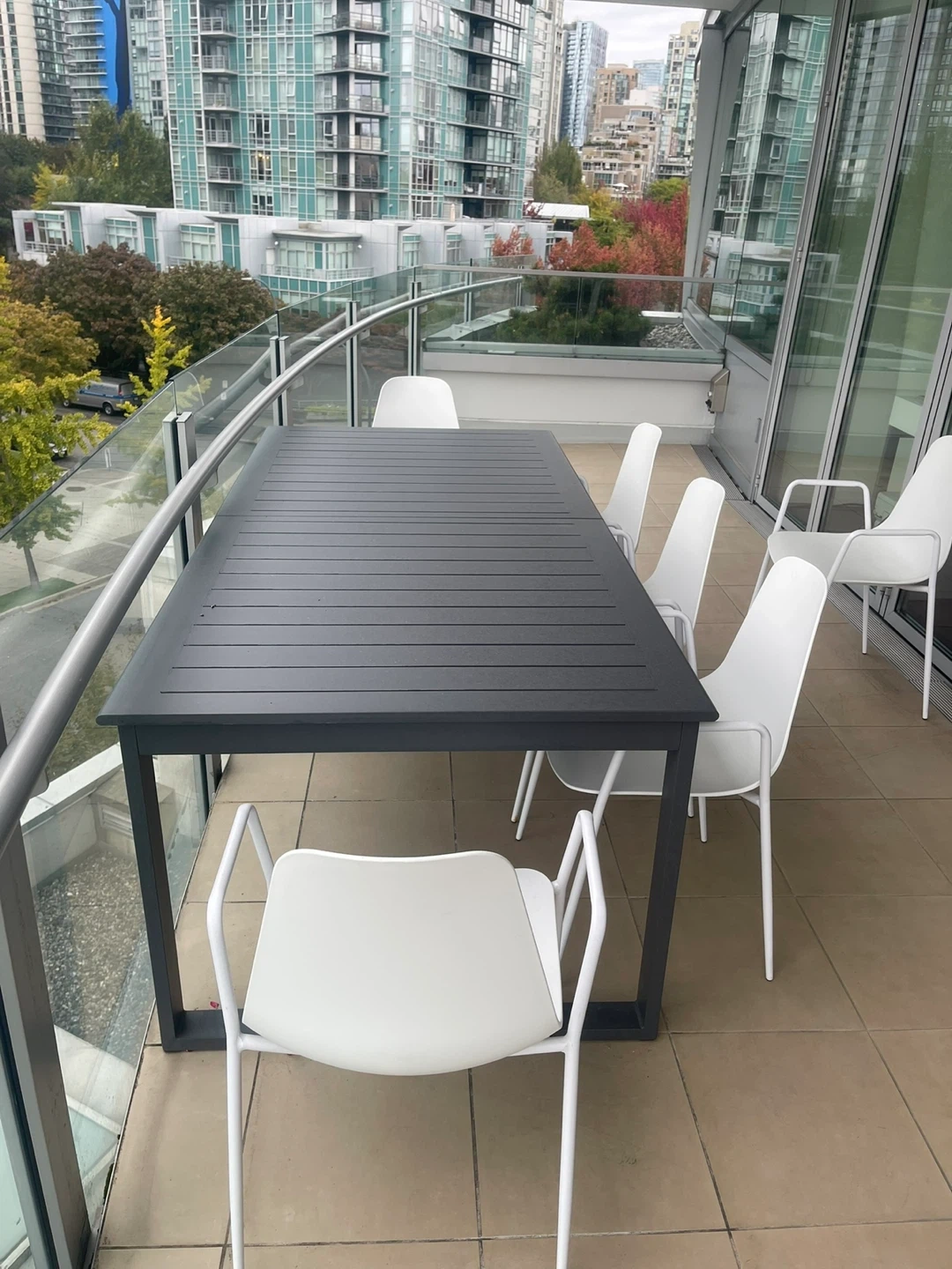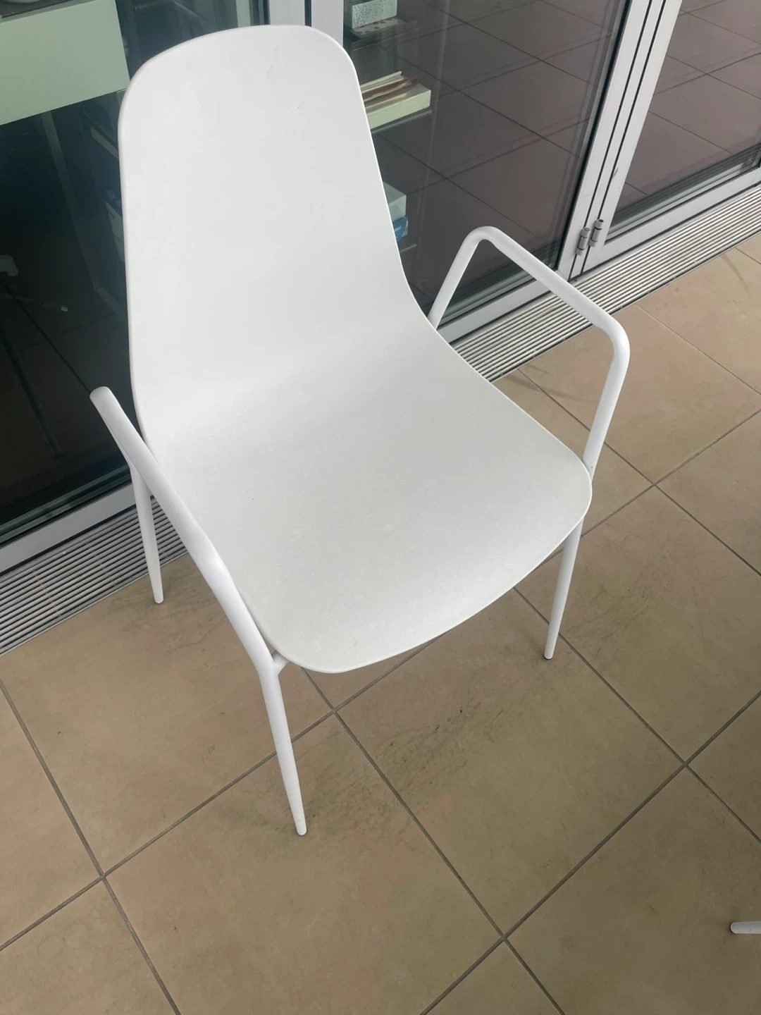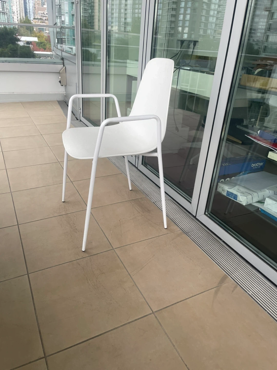 5Article dining chairs for sale - 4 available Price - 4 chairs $85/each Original Retail $109/each Color - white Pick-up in Yaletown Description - white plastic seat with white steel base Full product details can be found here - https://www.article.com/product/18026/svelti-stackable-dining-armchair-pure-black?queryID=6fd6f245caa7284b23c2fa46fb70d15a&index=production_product Table is also available from Article $1,000 (original retail $1599)