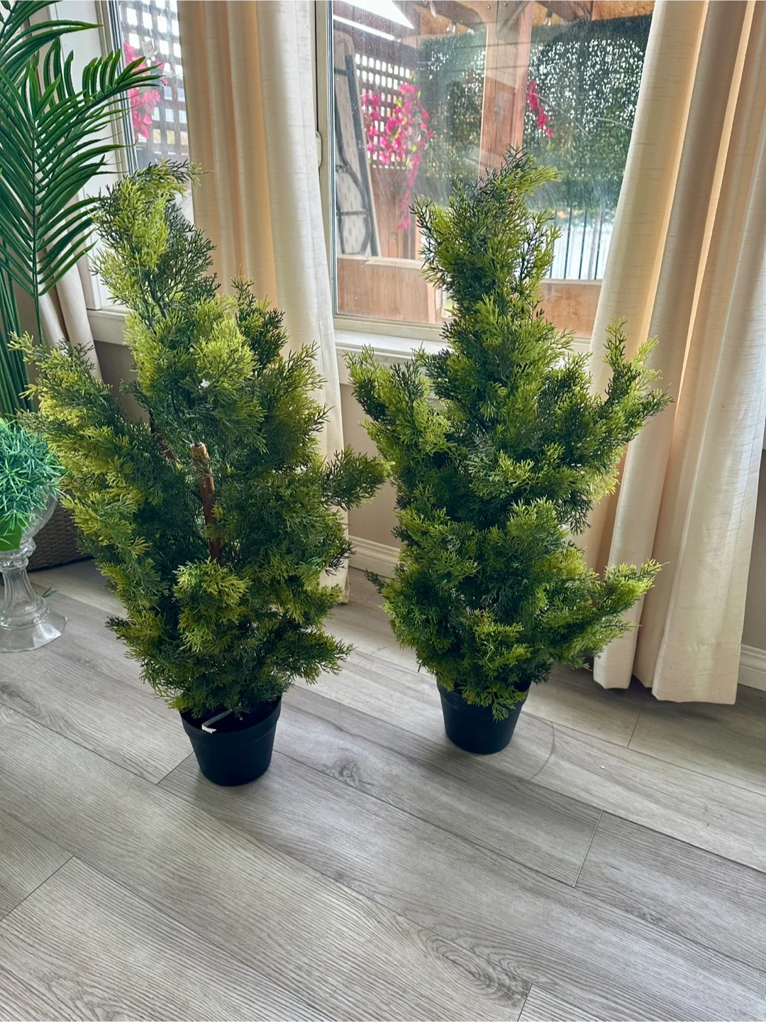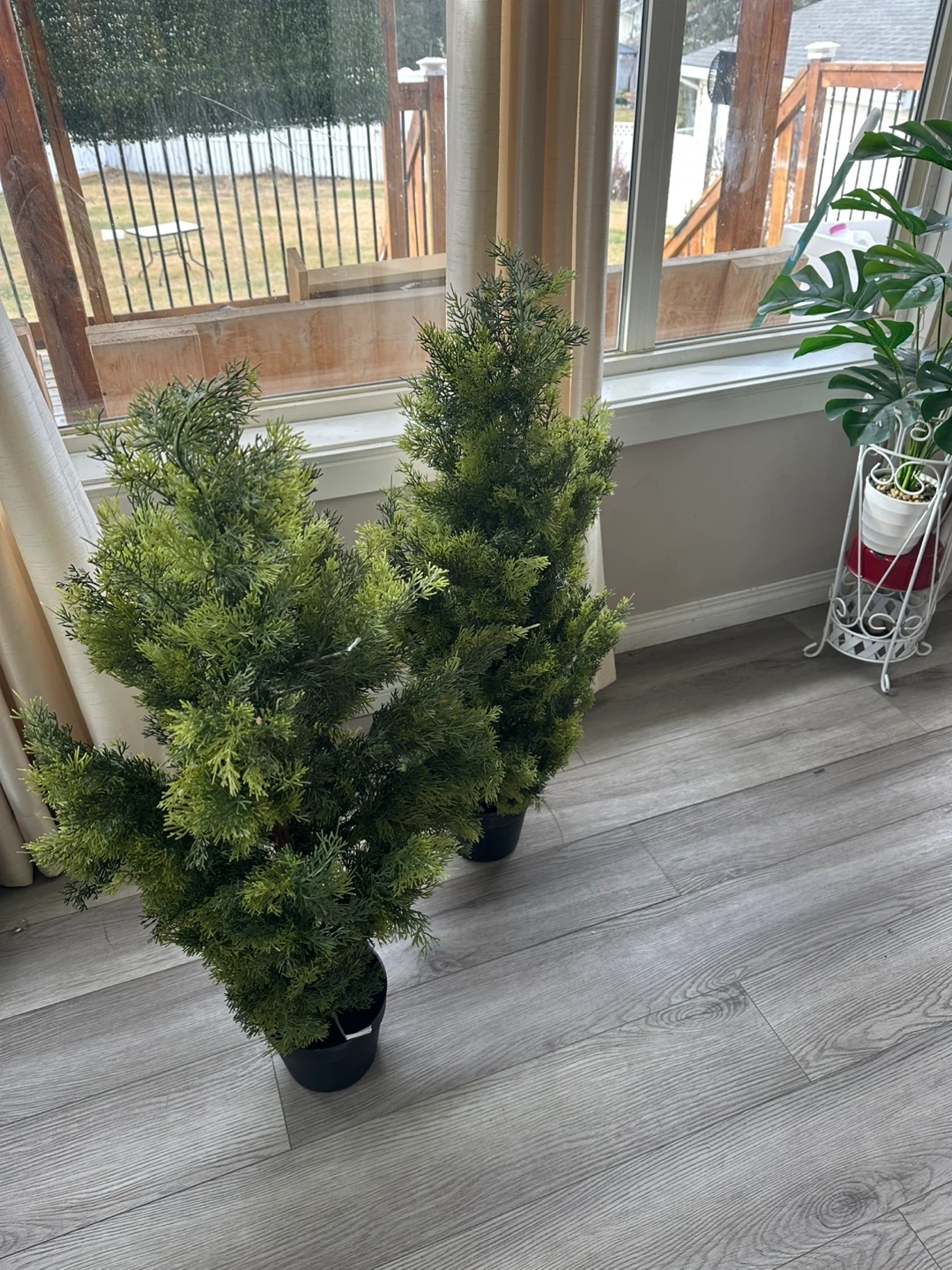 28Selling a set of two artificial cedar trees! They come in their original box. Great for adding a touch of greenery to your home without the upkeep of real plants