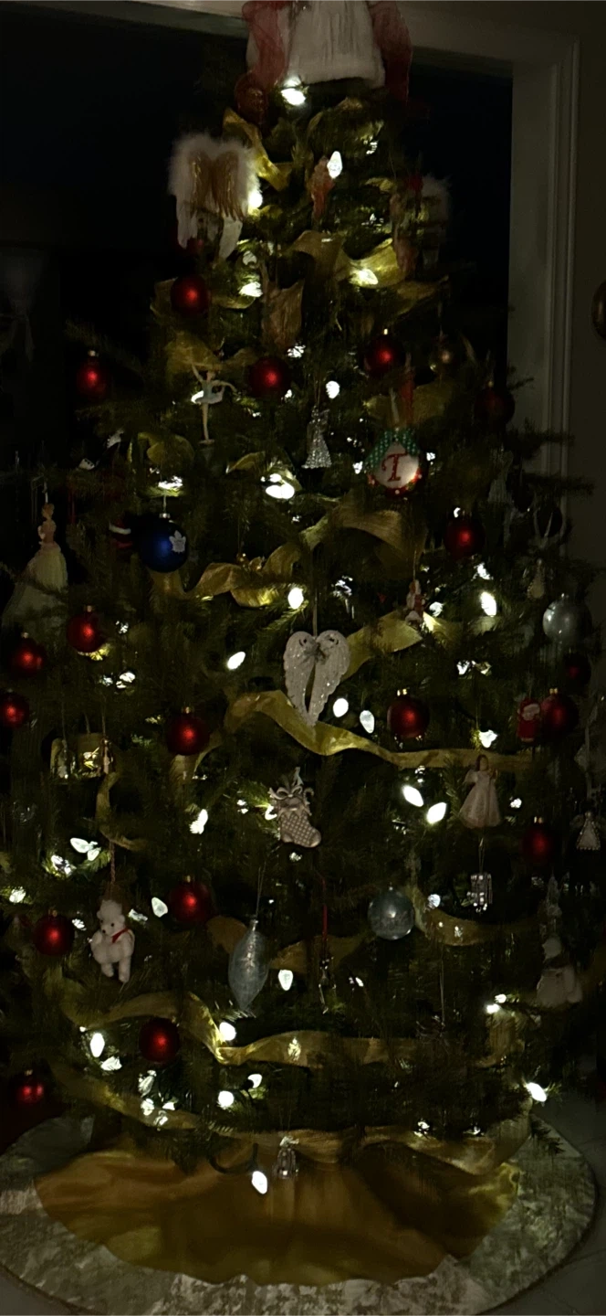 Selling artificial 8 feet Fur Christmas tree, comes with stand, looks so really when up! Just decorated and ready to brighten up your home for the holidays! The box is included for easy storage after the season. I am also selling Christmas lights if interested. See few pictures shows you some years with decorated!