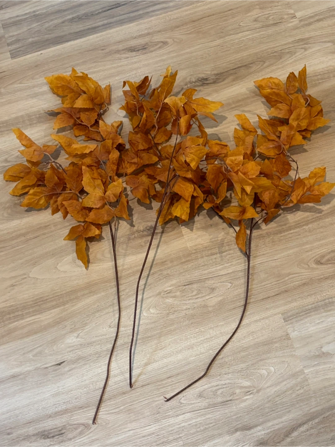 763 artificial fall leaves. Perfect for adding a touch of autumn to your home decor! They look great in a vase or as part of a larger arrangement. The branches are approximately 34 inches long.