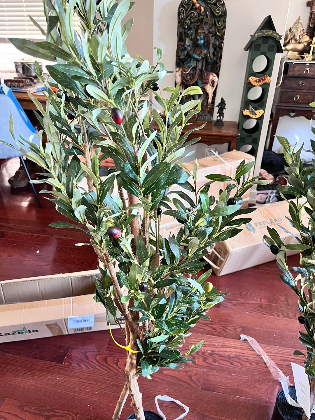 106Artificial olive tree, perfect for home décor. Full and lush. Comes in a woven basket. Multiple sizes available.