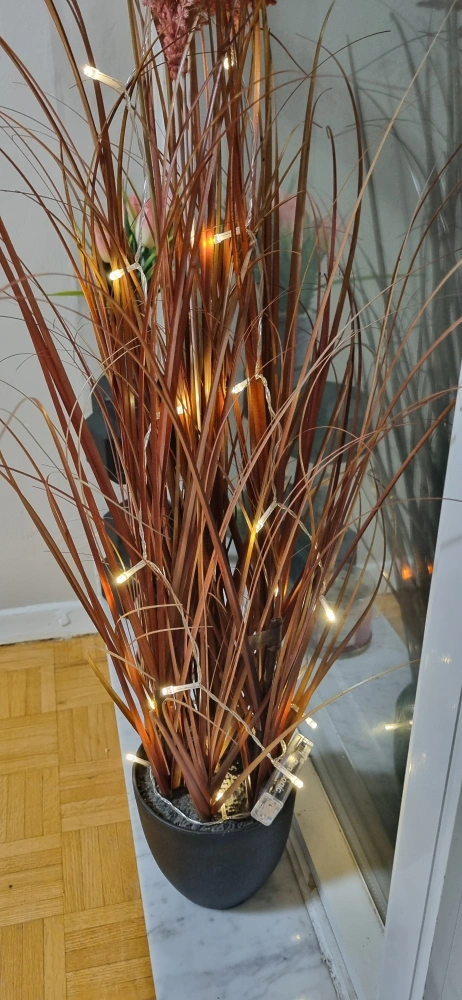 10Tall pampas grass with integrated LED string lights in a black pot. Perfect for home decor.
