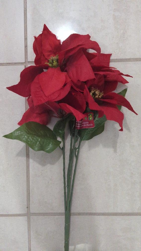 A bundle of vibrant red poinsettia flowers to brighten up any space! These artificial flowers are perfect for adding a touch of holiday cheer or year-round colour to your home. They are in excellent condition and ready to be displayed