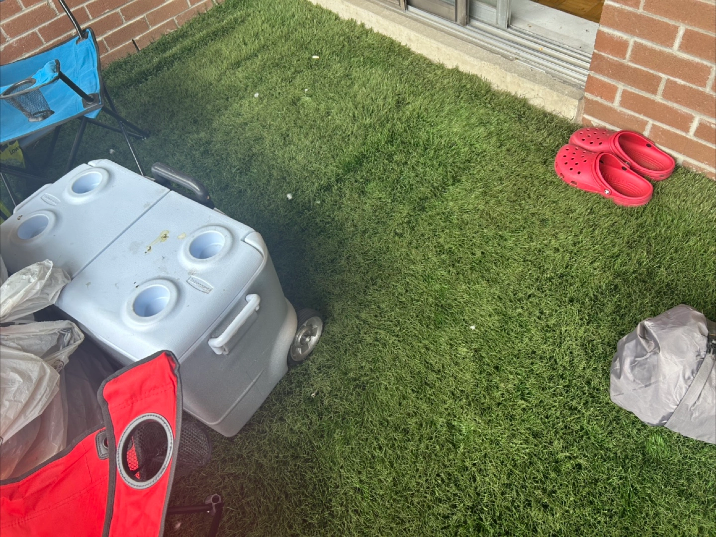 Artificial grass mat, great for small outdoor spaces. Perfect for patios or balconies. Size: approximately 20x6 feet