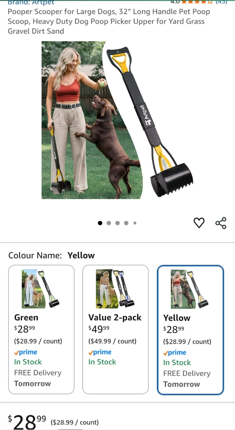 Artpet 32" Pooper Scooper for Large Dogs - Yellow