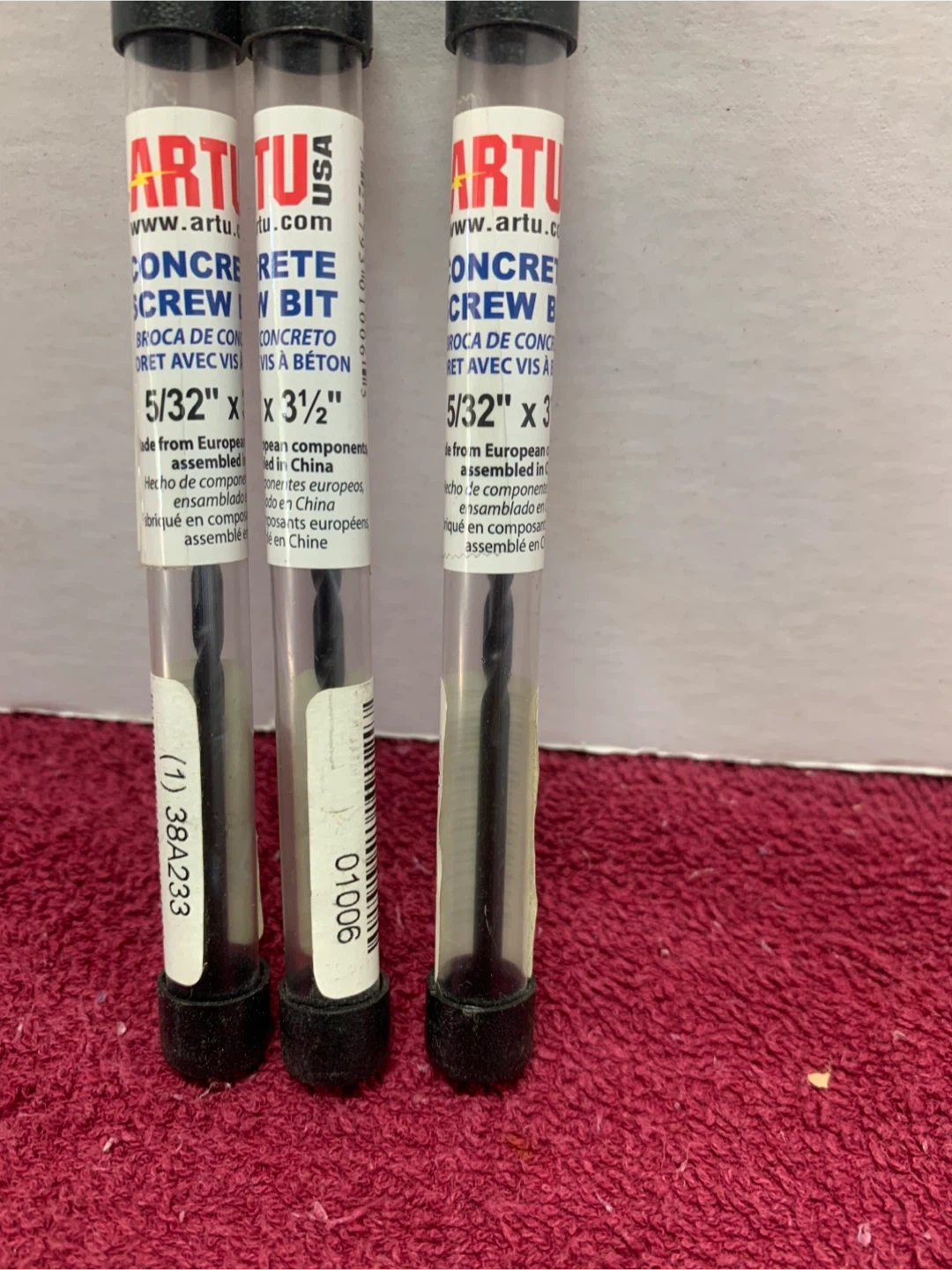 ARTU 5/32 X 3-1/2 concrete bits, new in packaging, 3 available. $4 each or 3 for $10 Pickup in Bolton
