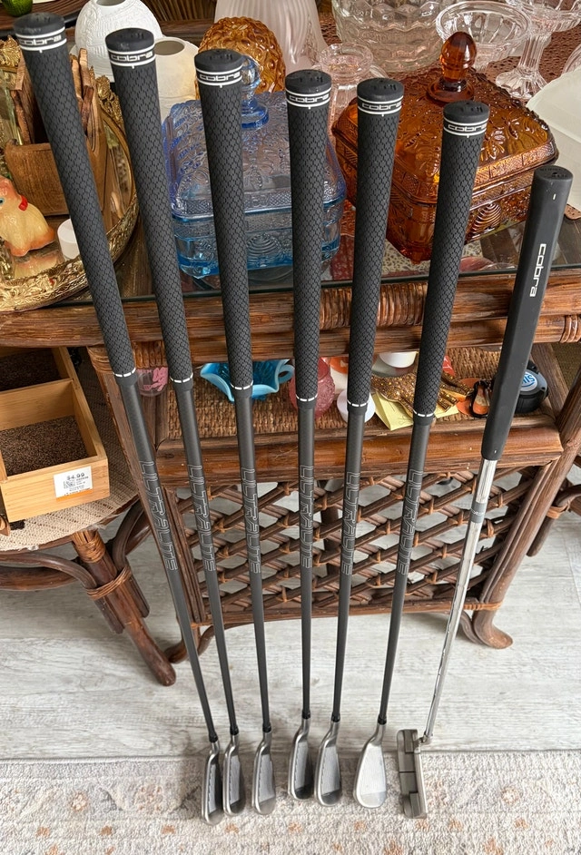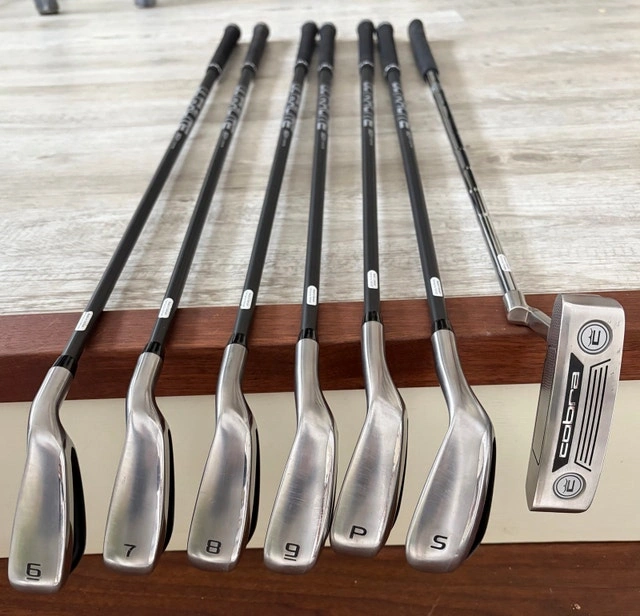 Full set includes: Driver, 3W, 4 and 5 hybrid, 6, 7, 8, 9, PW, SW and putter. Bag and head covers for woods and hybrid clubs included. Bought in May of 2025. Used for one season. I have the original bill of sale from Tecumseh Golf.