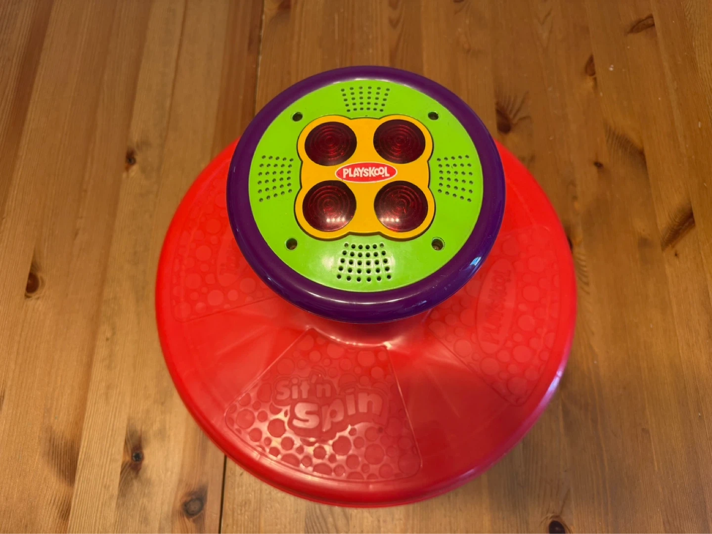 This is a Playskool Sit 'n Spin Musical Fun toy. It has colorful lights and sounds. Kids can spin around and have fun!