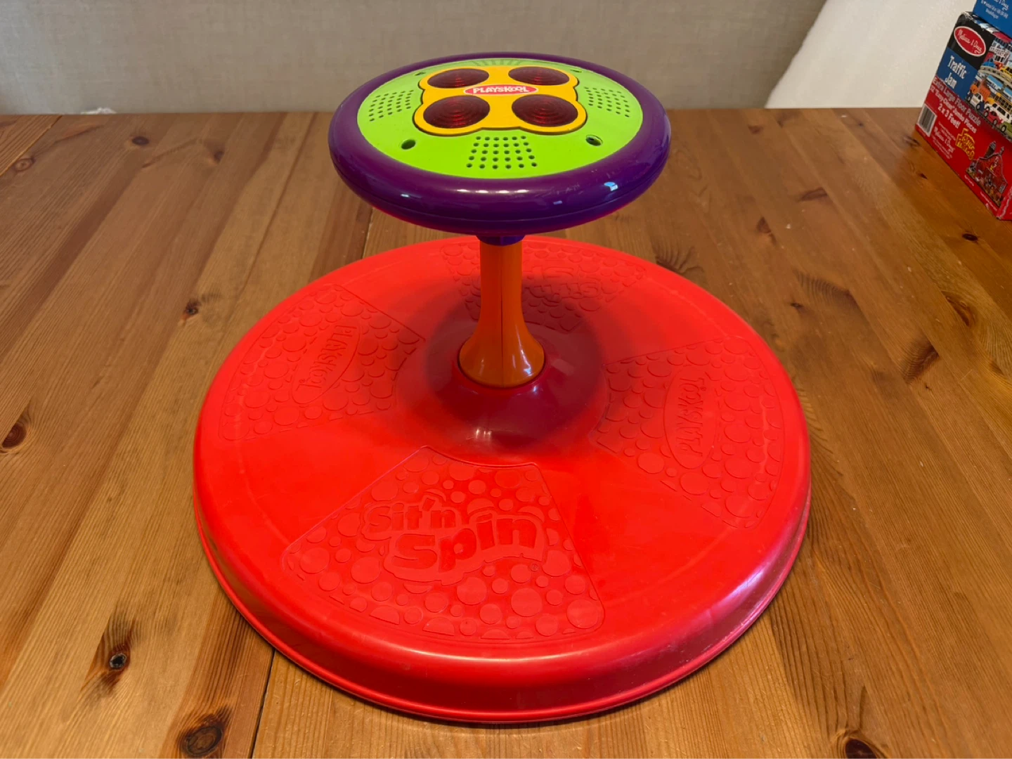 This is a Playskool Sit 'n Spin Musical Fun toy. It has colorful lights and sounds. Kids can spin around and have fun!