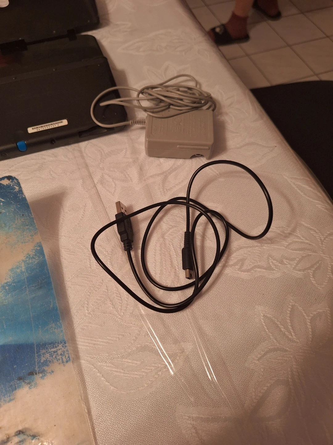 This is a Nintendo new 3DS XL in grey. It comes with a grip accessory. Games are pre-loaded on the console and there is a memory card inside. Some cosmetic damage but everything works and battery is still good. comes with official charger and 3rd party USB charger cable. No box or games.