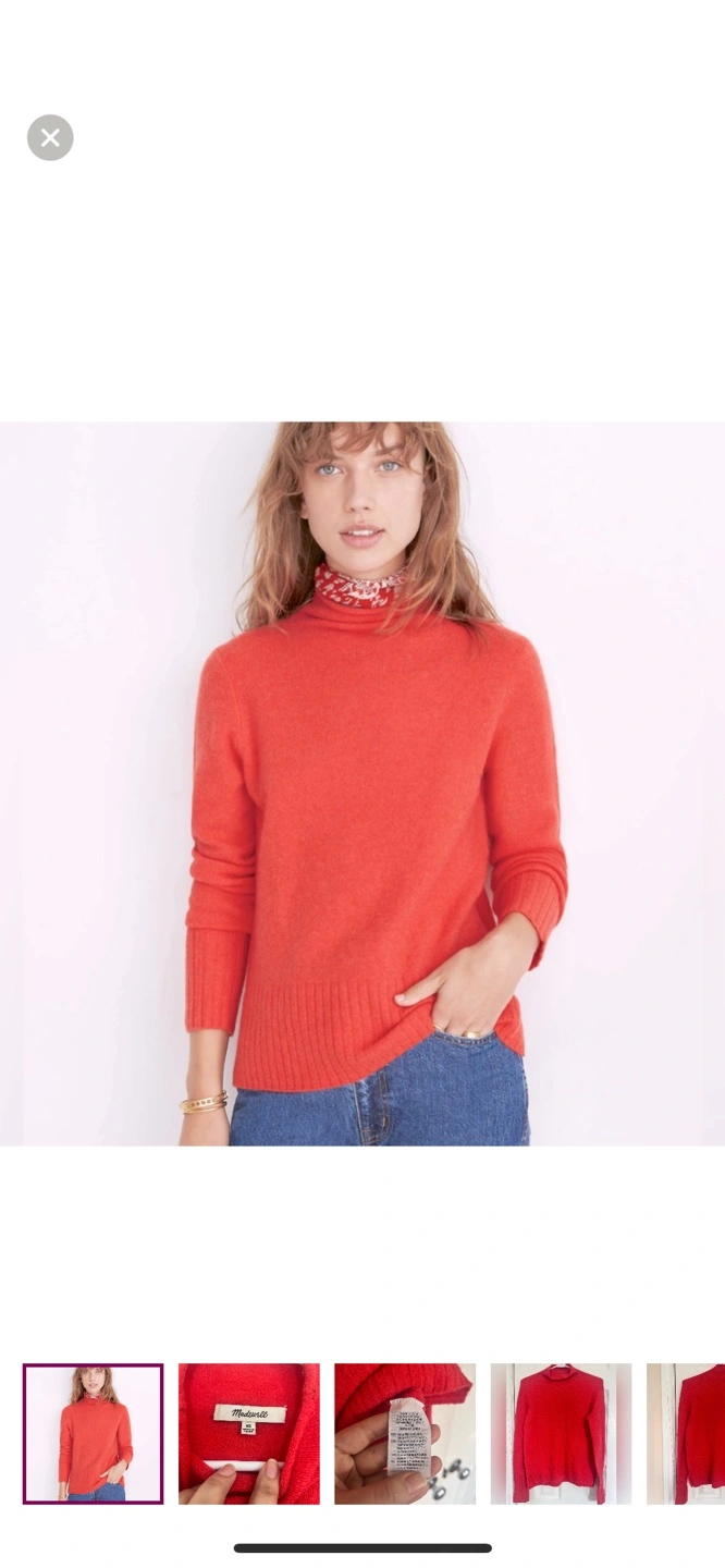 Cozy and soft mockneck sweater. Not too thick and can be worn as a single layer. Check fabric tag for composition.
