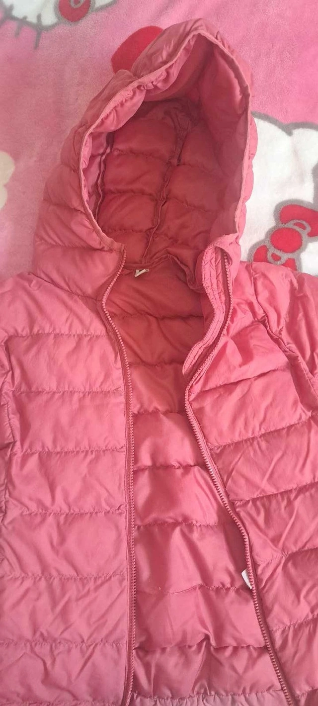 This is a cute and gently pink Uniqlo spring jacket for a child, perfect for transitional weather. It's in good, used condition and is a size 7-8. Brand: Uniqlo. Size: 7-8. Colour: Pink. If the ad is still up, the jacket is still available.