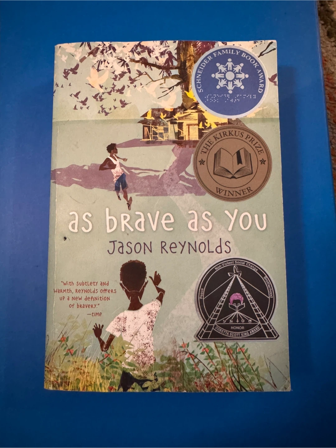86Selling the book "As Brave As You" by Jason Reynolds It has won the Schneider Family Book Award, the Kirkus Prize, and the Coretta Scott King Award