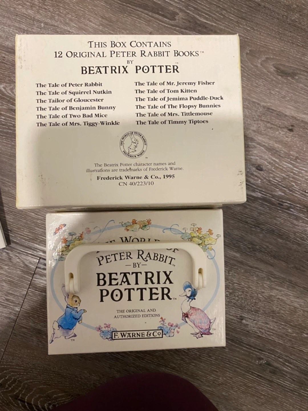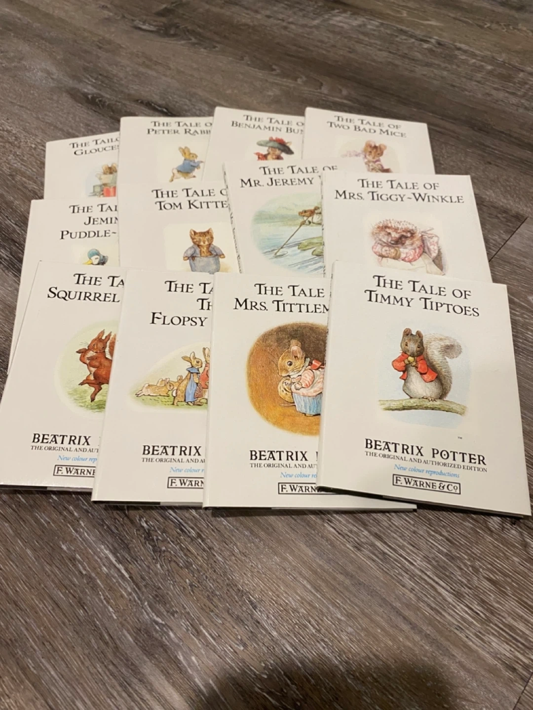 Selling a complete set of Beatrix Potter's Peter Rabbit books! This set includes 12 original Peter Rabbit books in a cute carrying case. Perfect for young readers and collectors alike Pick up Sage Hill NW Cash only (or E-transfer on pick up) Pet and smoke free home Check out my other listings