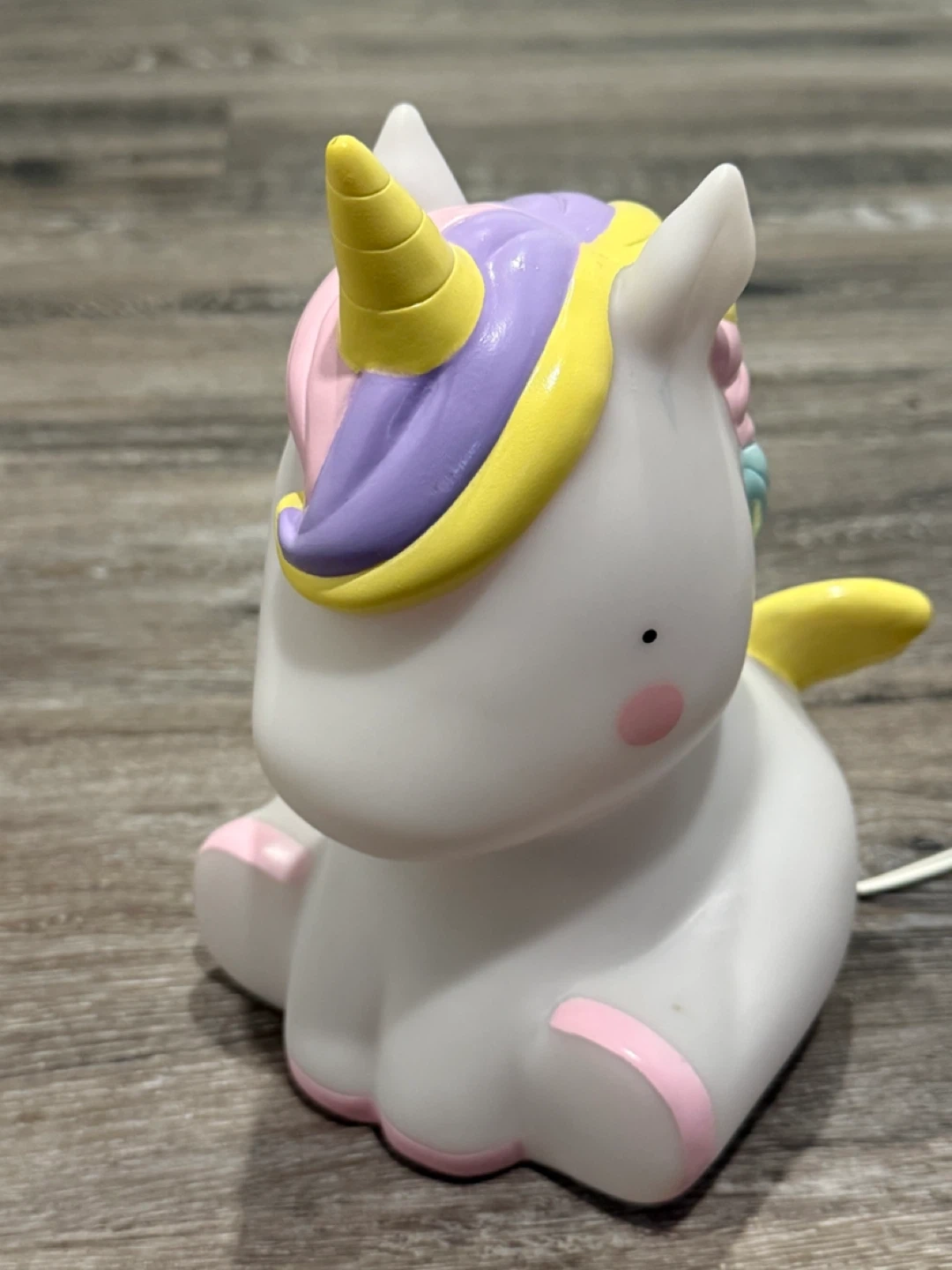 123This adorable unicorn night light is perfect for a kid's room! It has a soft, comforting glow, making it ideal for bedtime. It features a colourfully decorated mane and tail, and comes with a power cable and switch 8 inches in height 6 inches deep Pick up Sage Hill NW Cash only Check out my other items Pet and smoke free home