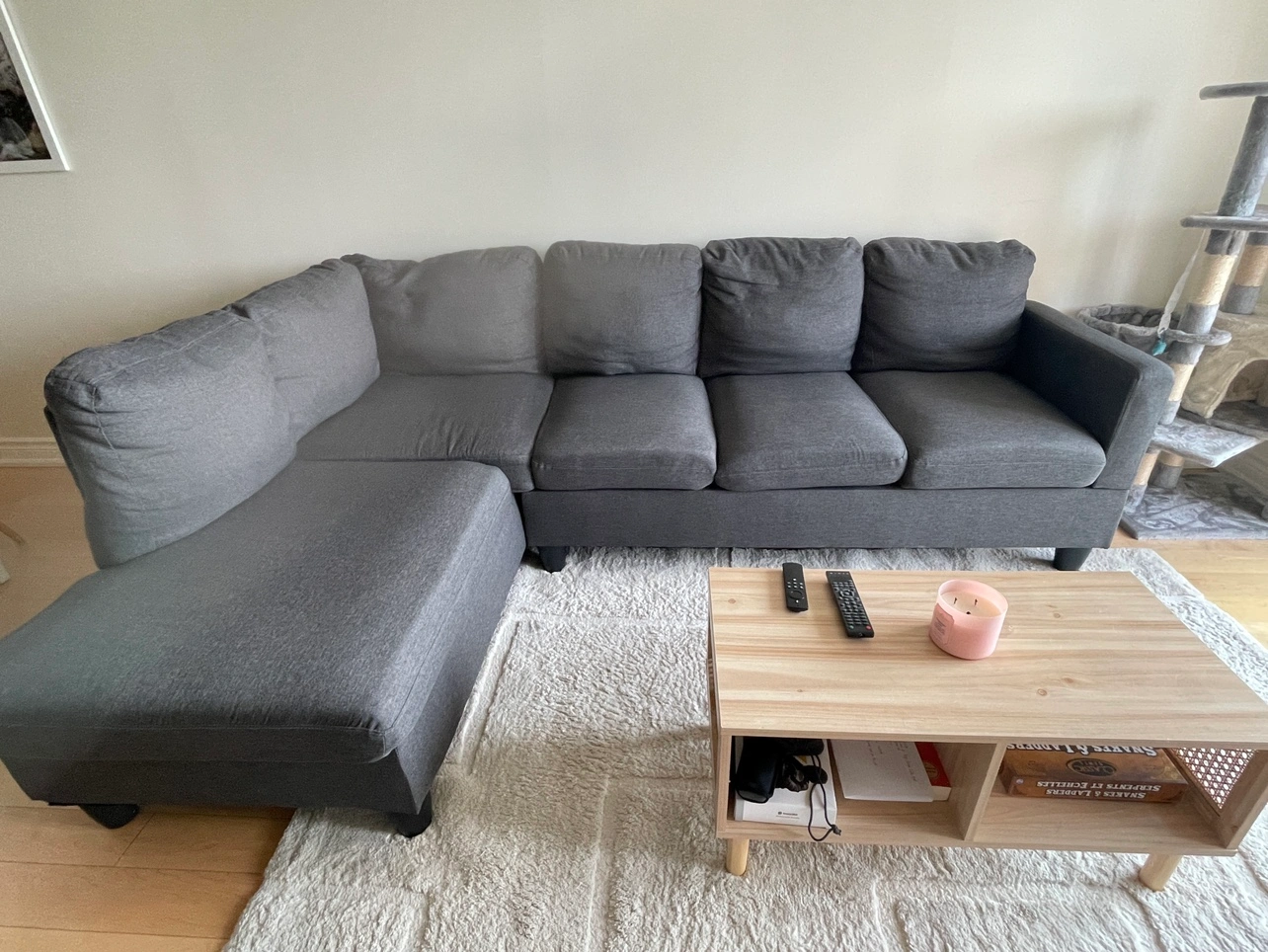 L shaped Grey Sectional Sofa from wayfair. Great for small apartments.