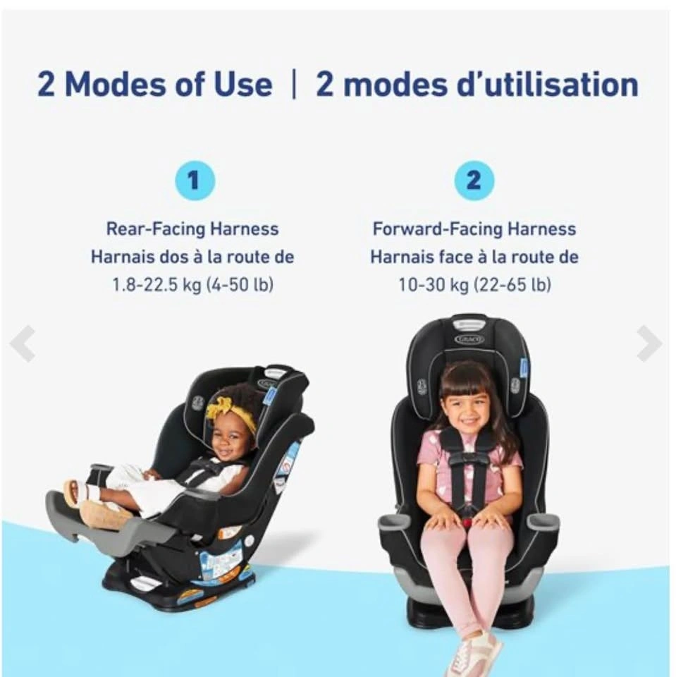 Selling a brand new Graco Extend2Fit Convertible Car Seat in Titus Grey/Black (Model 2149057). Retail price: $419 + tax. Date of Manufacture: 25/04/15. Features: Rear-facing up to 50 lbs, Forward-facing up to 65 lbs. Includes an adjustable 4-position extension panel for extra legroom, 10-position headrest with 5-point harness, and side-impact protection. The seat pad is machine-washable. Perfect for long-term use as your child grows. Durable, safe, and comfortable. Pickup available in Vaughan, Innisfil, or Mississauga.