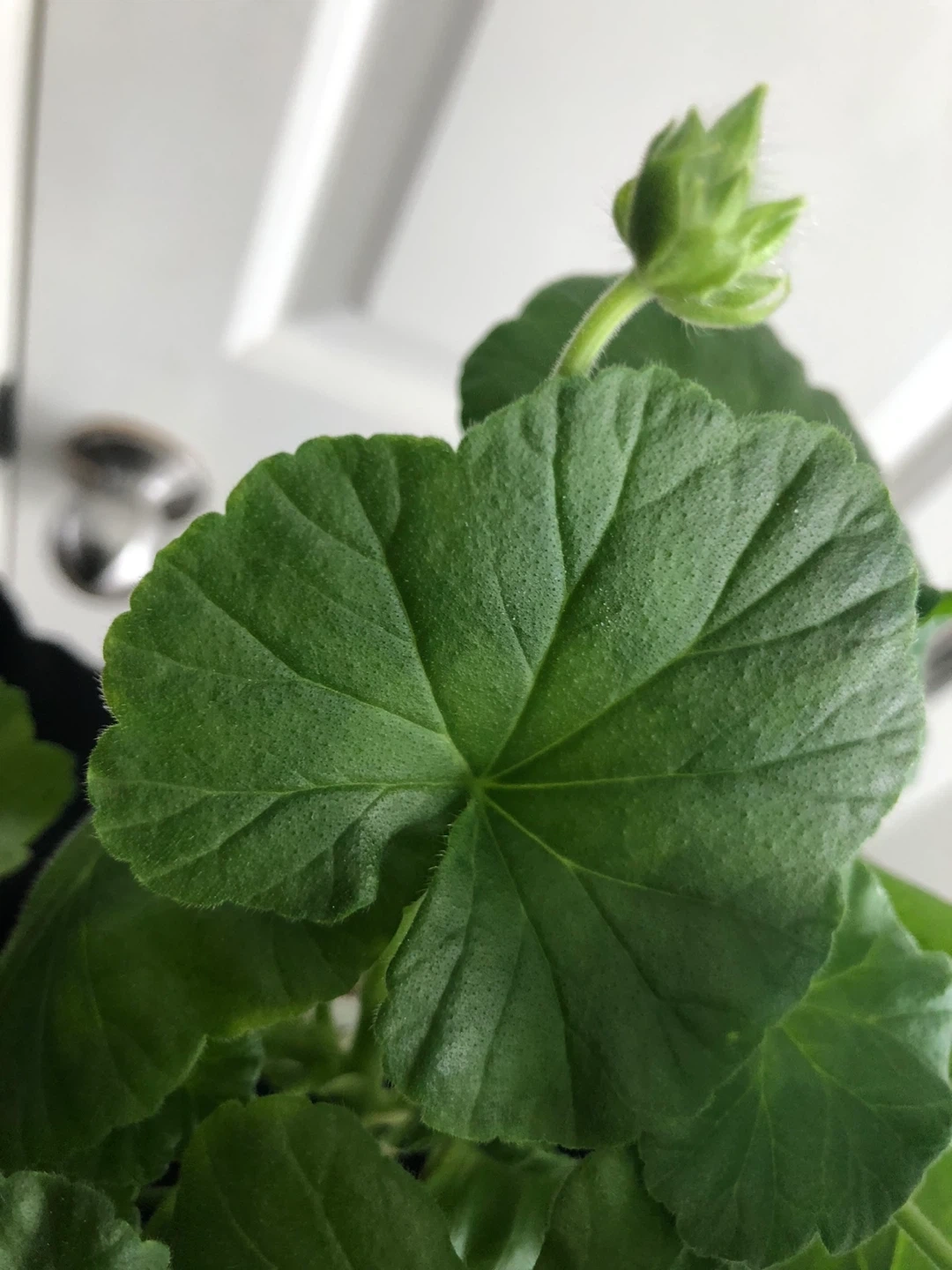 A healthy geranium plant in a repurposed margarine container. It's ready for a new home. This plant's green leaves and budding flowers offer a touch of nature indoors. It's a pretty, low-maintenance addition to any space. About to bloom (white colour). East Kildonan. No delivery.