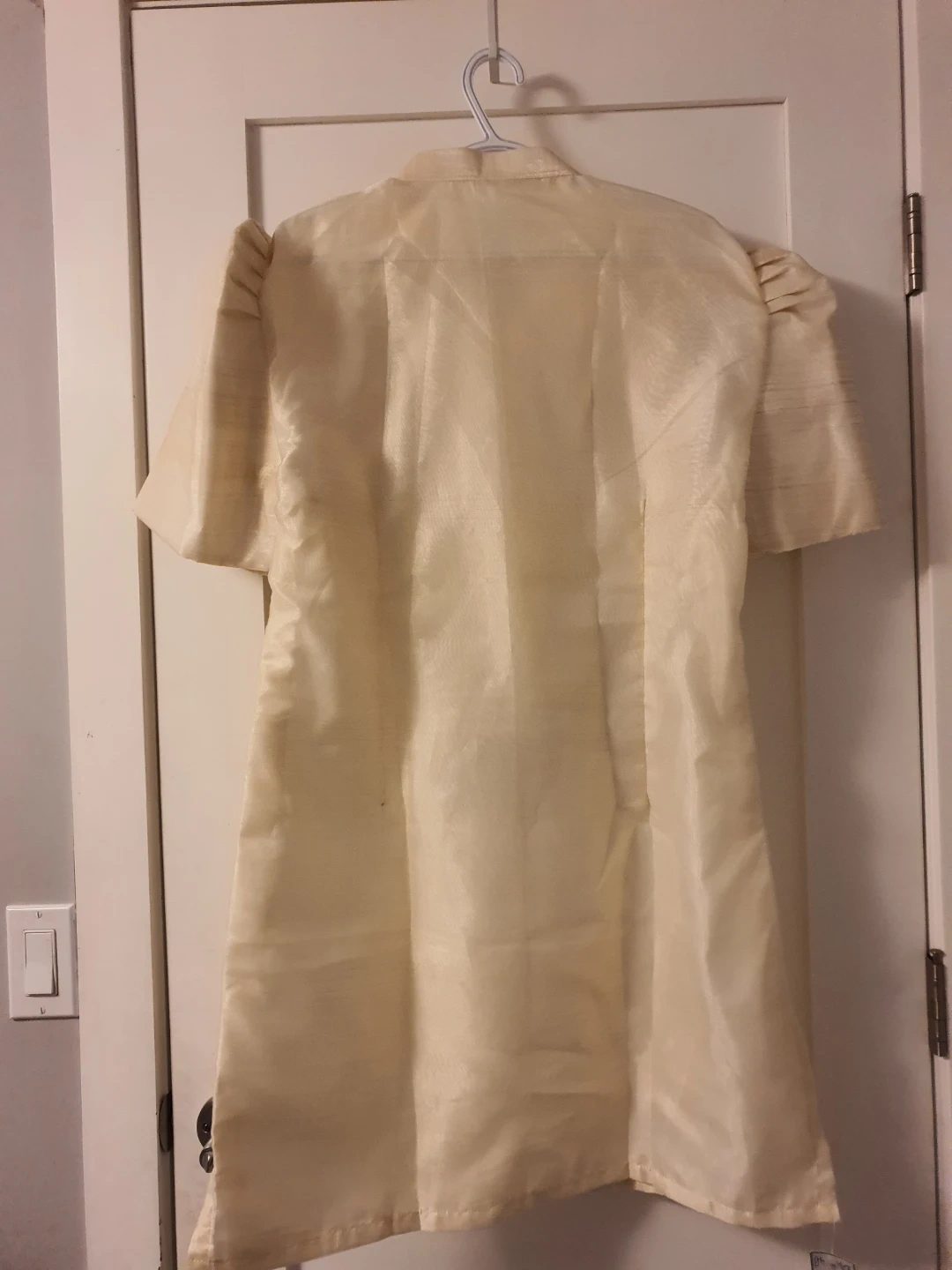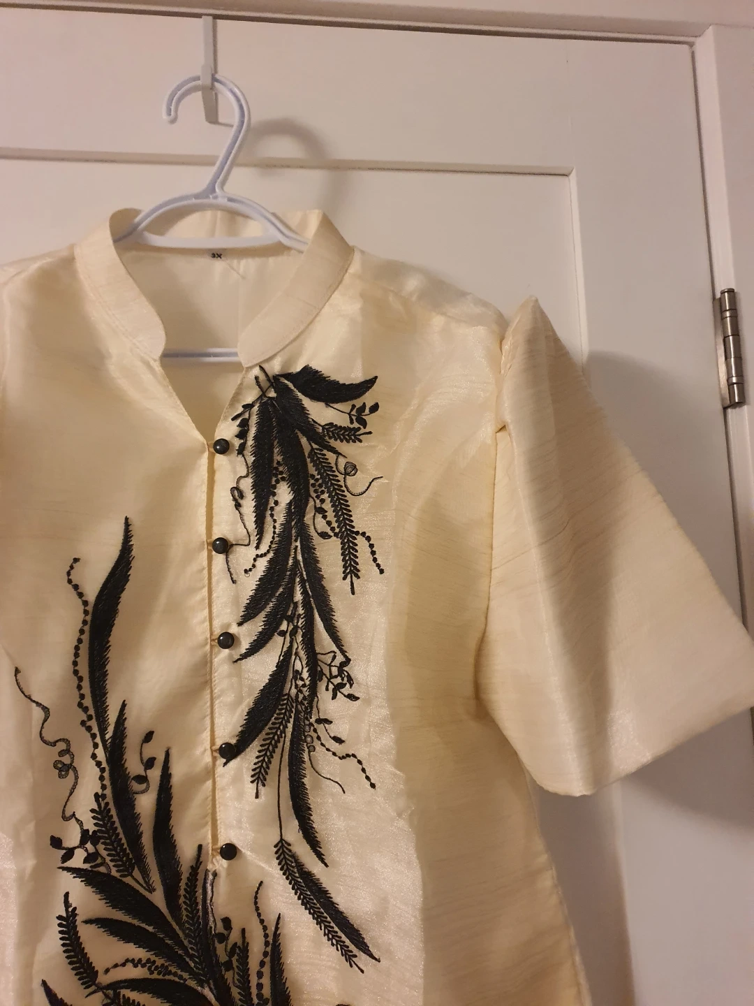 Beautiful cream-coloured Filipiniana dress with elegant black embroidery. Perfect for special occasions or cultural events. It's unused and in great condition and ready for a new home!