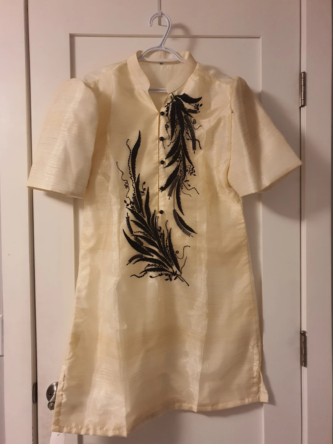 Beautiful cream-coloured Filipiniana dress with elegant black embroidery. Perfect for special occasions or cultural events. It's unused and in great condition and ready for a new home!