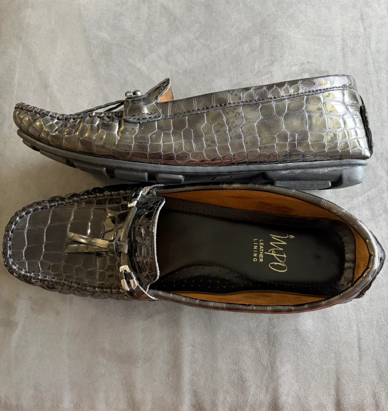 IMPO Dark Gray Patent Faux Croc Loafers - Size 10