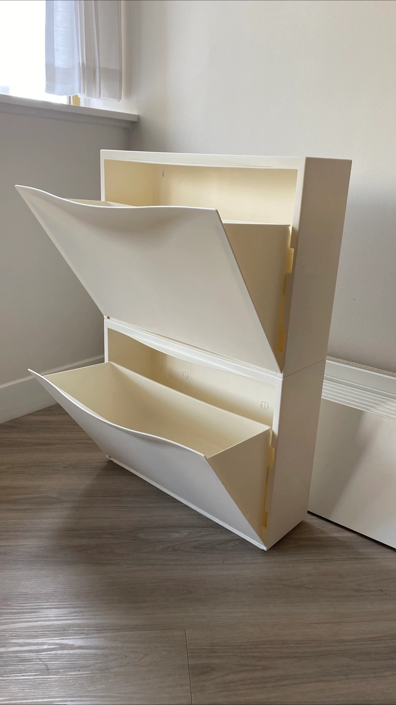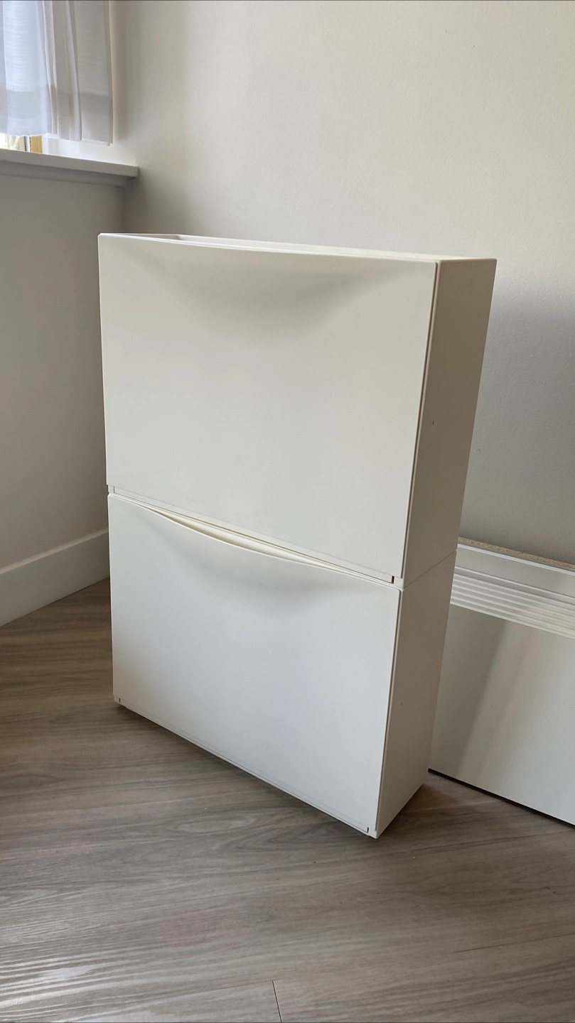 Selling a white IKEA Trones shoe/storage cabinet! It's in great shape and ready to help organize your entryway or closet. These cabinets are super handy for storing shoes, accessories, or even small toys.