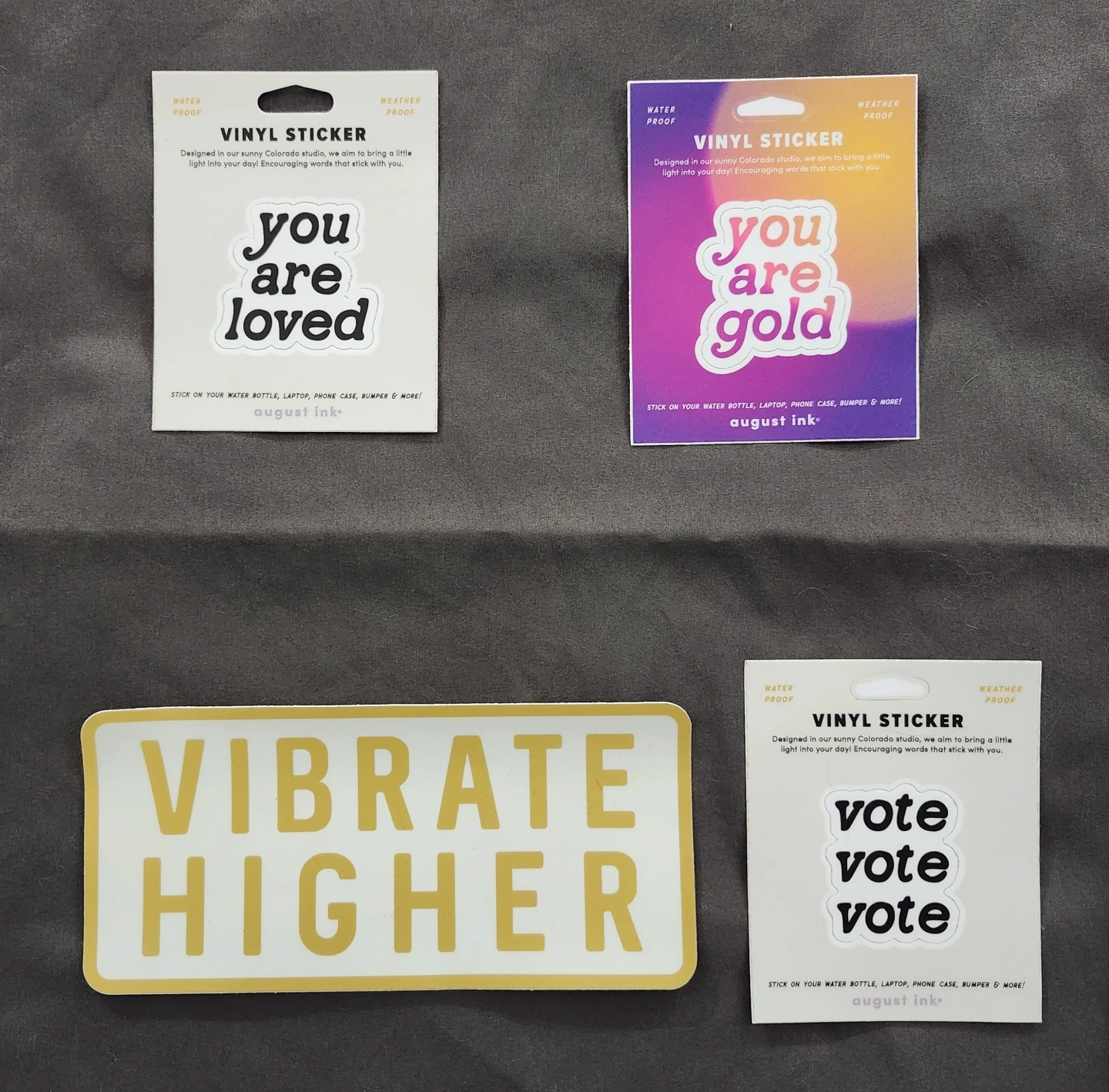 VINYL STICKERS - Encouraging Words That Stick With You. Water & weather proof, scratch resistant.