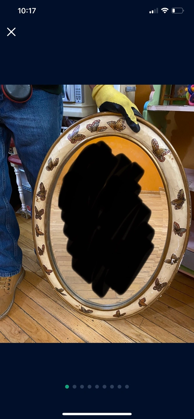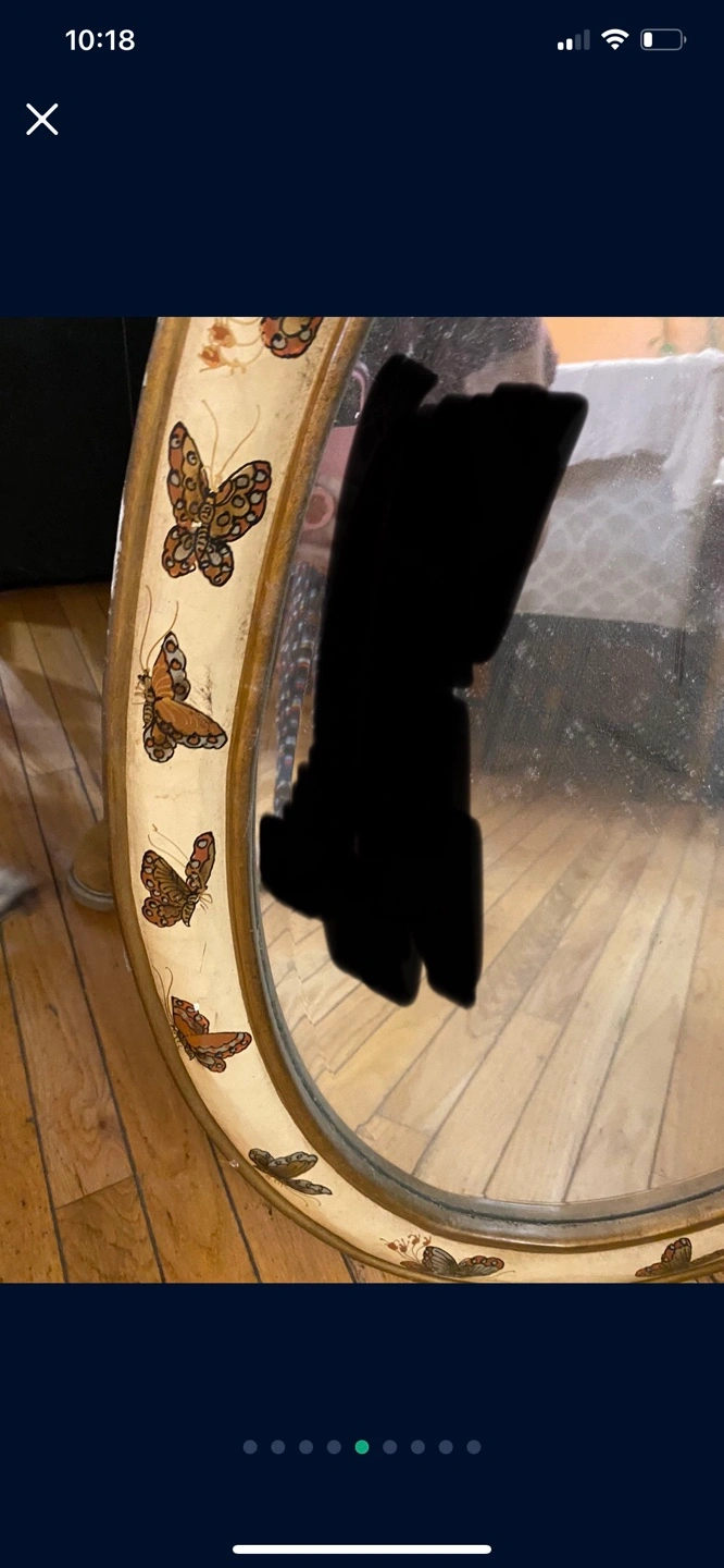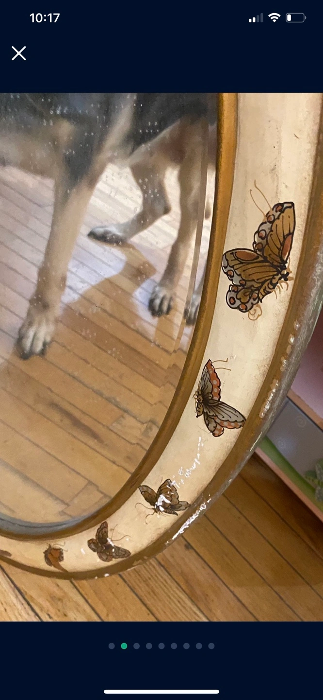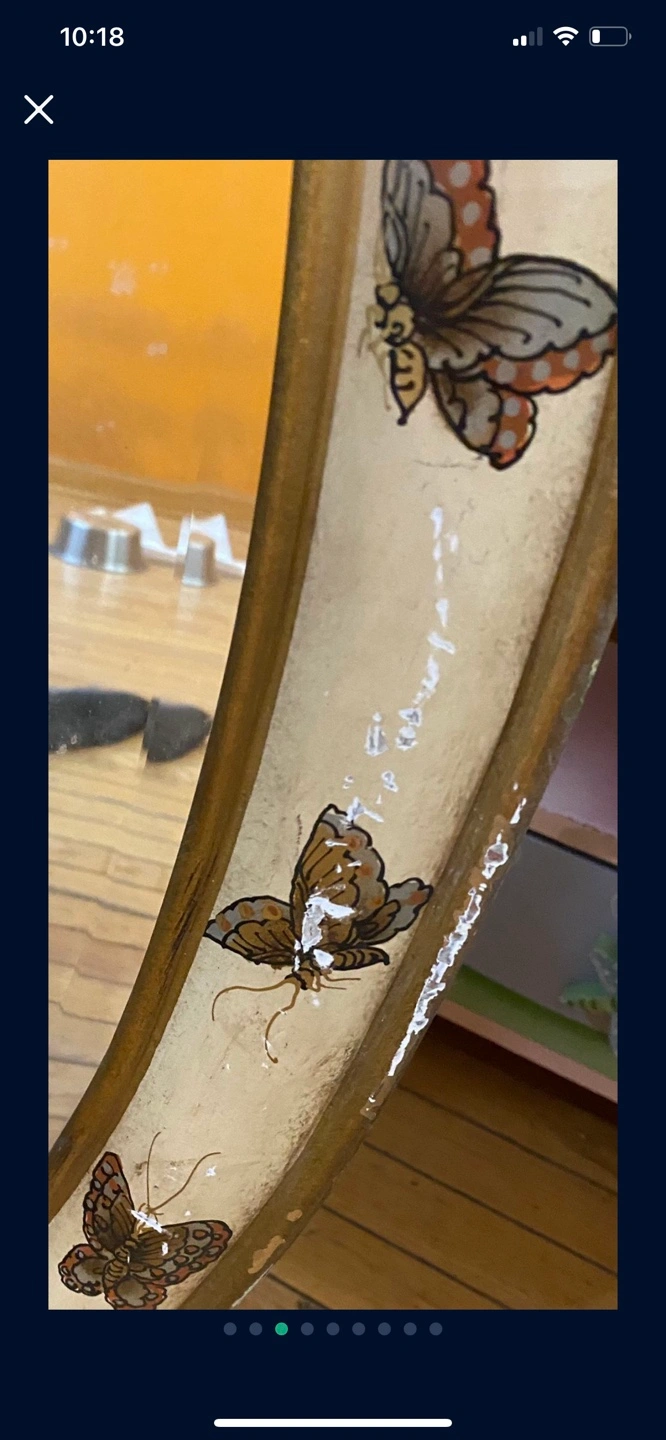 Color is an cream with gold and orange metallics on the drawn butterflies