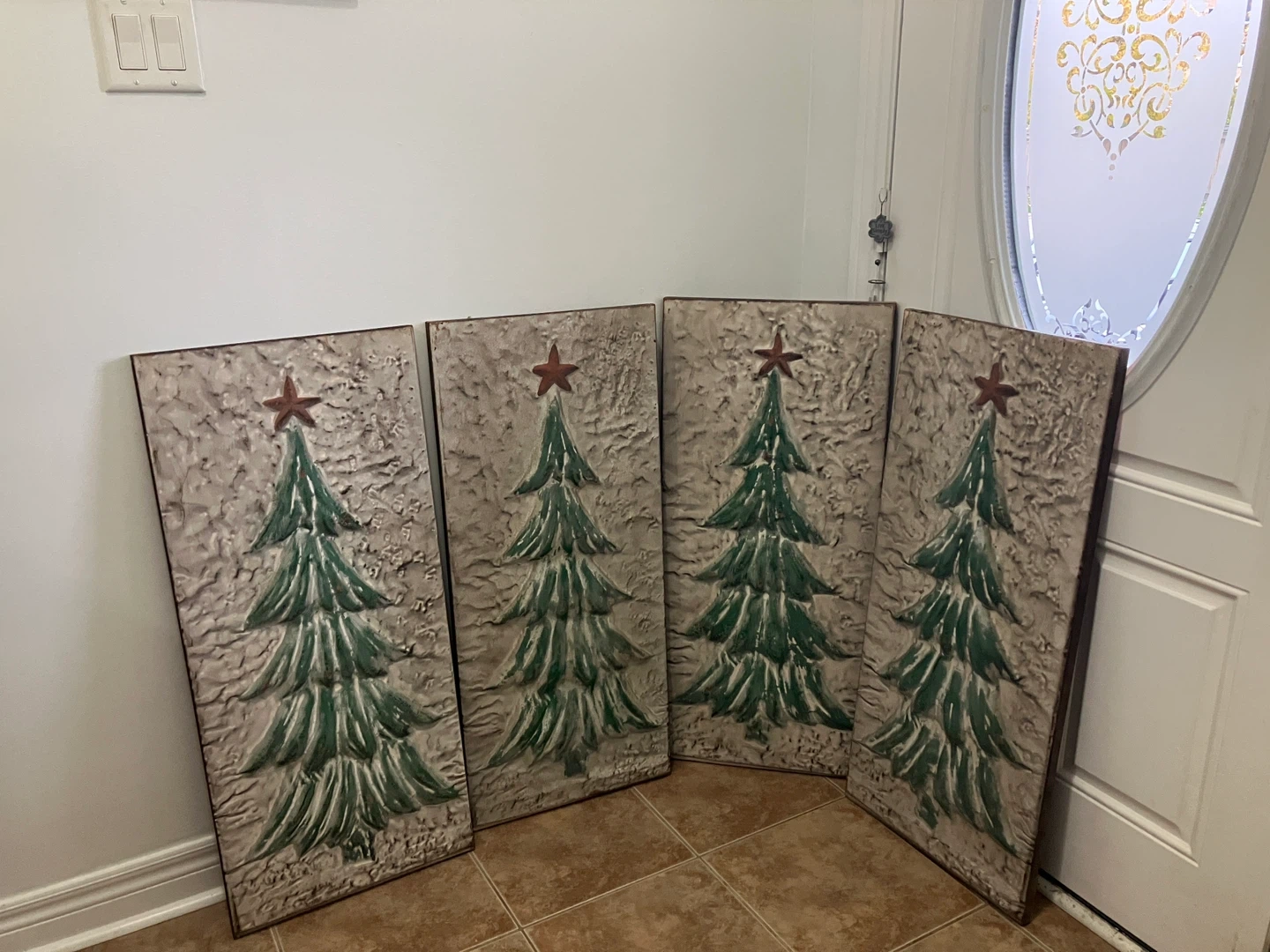 10Selling a set of four Ashland Christmas tree wall decor pieces. These are perfect for adding a festive touch to your home during the holidays! Originally bought for $140.