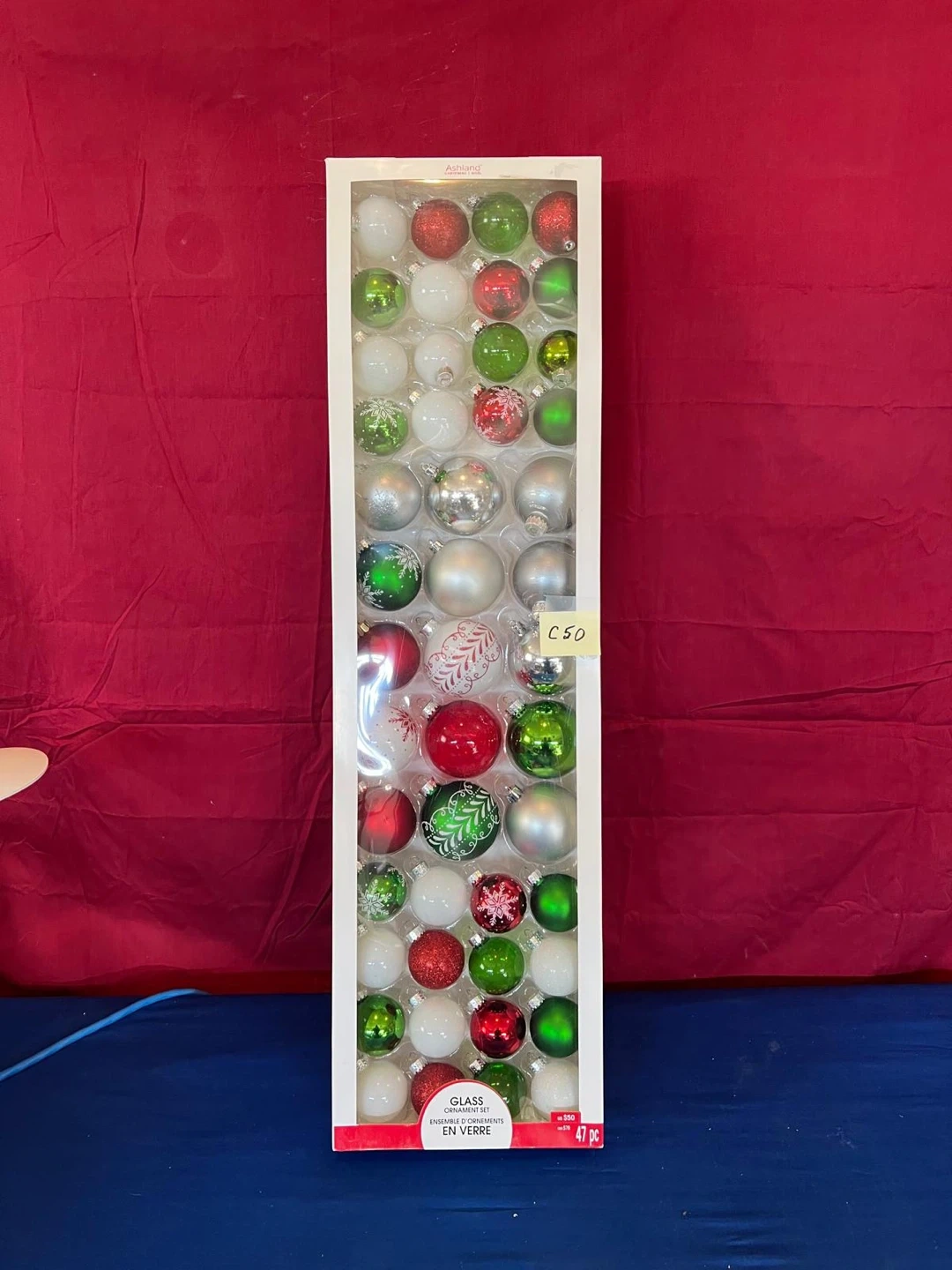 Selling an Ashland glass ornament set with 47 pieces! The set includes a variety of colours including red, green, silver, and white. Perfect for decorating your Christmas tree or any festive display Non Smoking, Pet friendly home. (Numbers are for seller’s purpose) Cross Posted, No returns (*Please see my page for other items and/or designs. Thanks!😊)