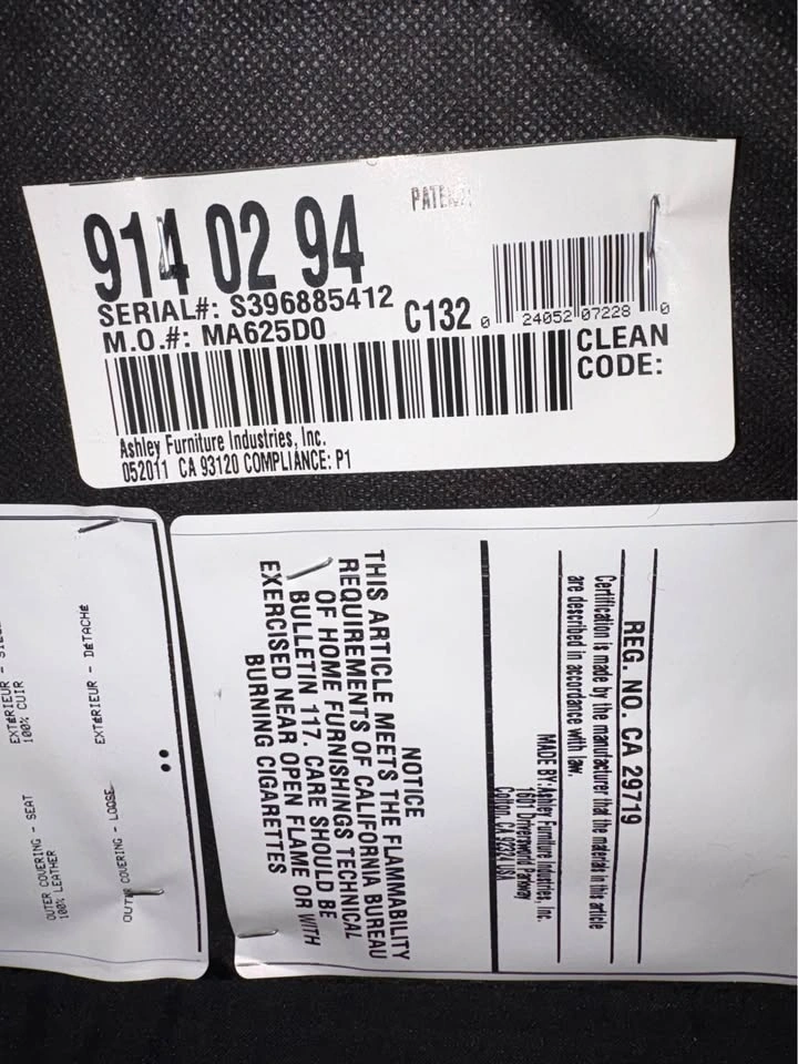 Ashley Furniture North Shore Leather Sofa, Loveseat, Chaise