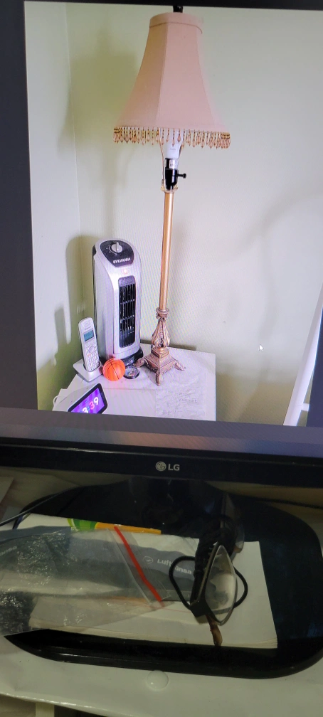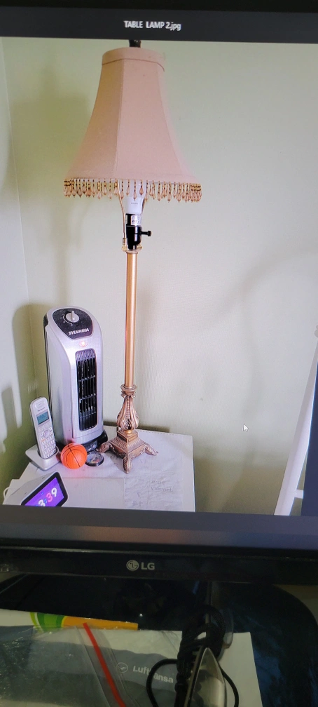 Selling a Ashley table lamps set . It features a unique stacked base design in black and gold tones, topped with a cream-colored shade. It adds a touch of retro charm to any place