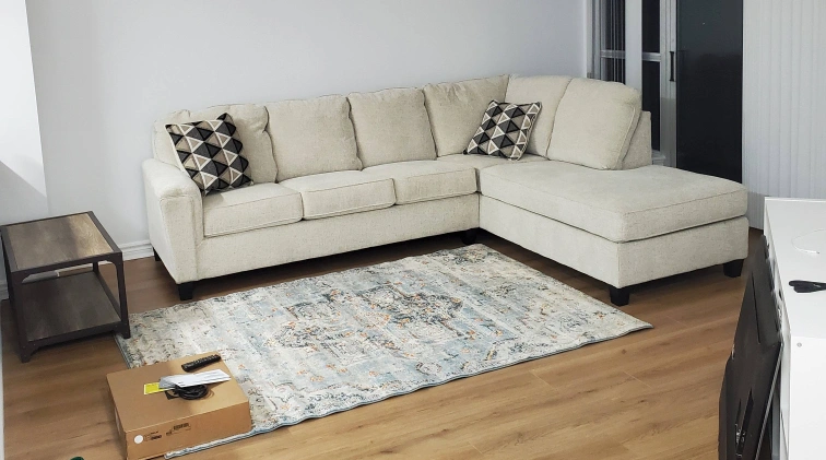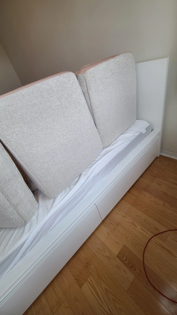 183Beige sectional sofa bed. Converts to a queen bed, which was more expensive than just a sofa 2 pieces: Right-arm facing corner chaise and left-arm facing sofa. 2 decorative pillows included. Purchased 15 months ago Moving out sale It is in great condition. No tears and no stains. Smoke-free and pet free home.