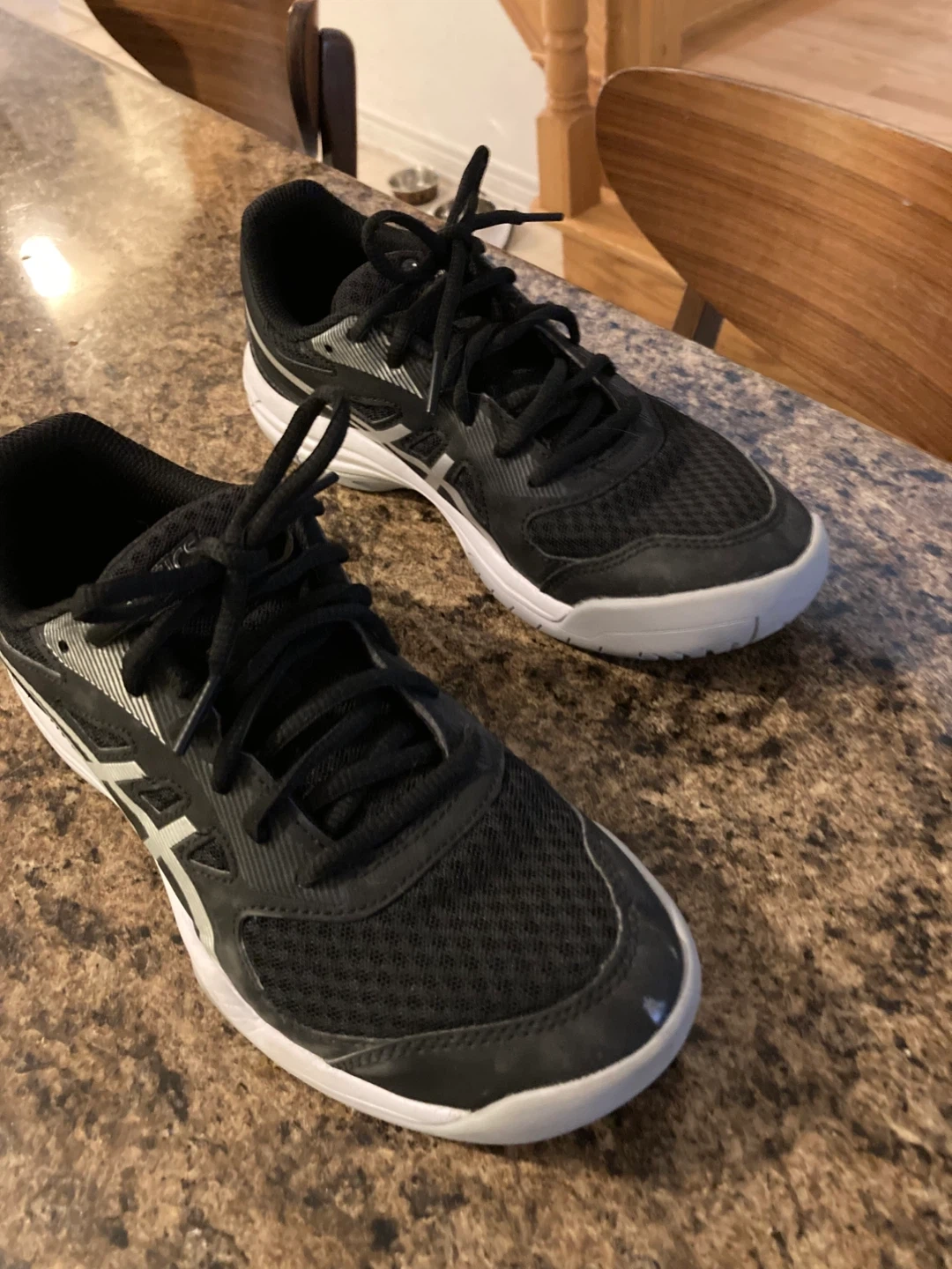 82Selling a pair of Asics Upcourt 5 volleyball shoes in black! They're in great shape and ready for a new home. Perfect for indoor sports or just casual wear. They have the classic Asics comfort and support. Women’s size 7.5