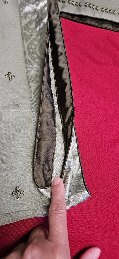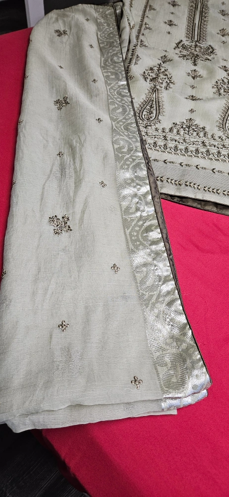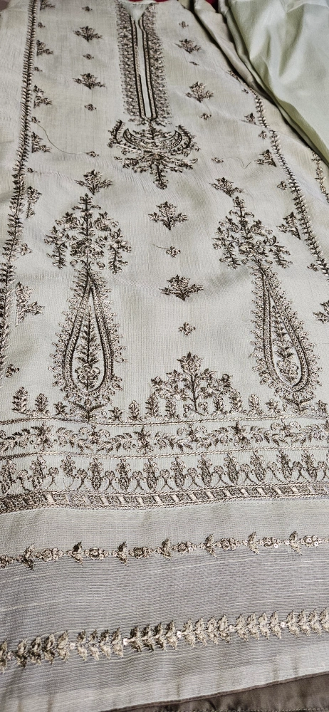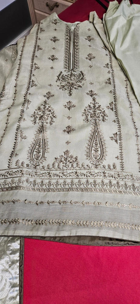 I wear this only once .selling in half price as I have used once recently very beautiful material cotten net .shirt length 43.inch
