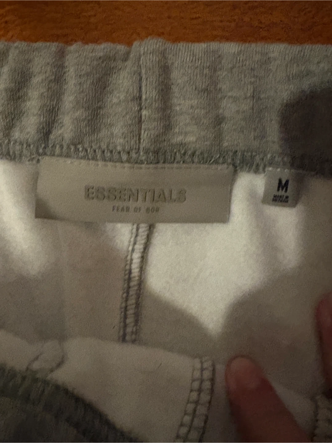 Grey sweatpants from Essentials, a Fear of God brand. Size medium. Made with a cotton blend.