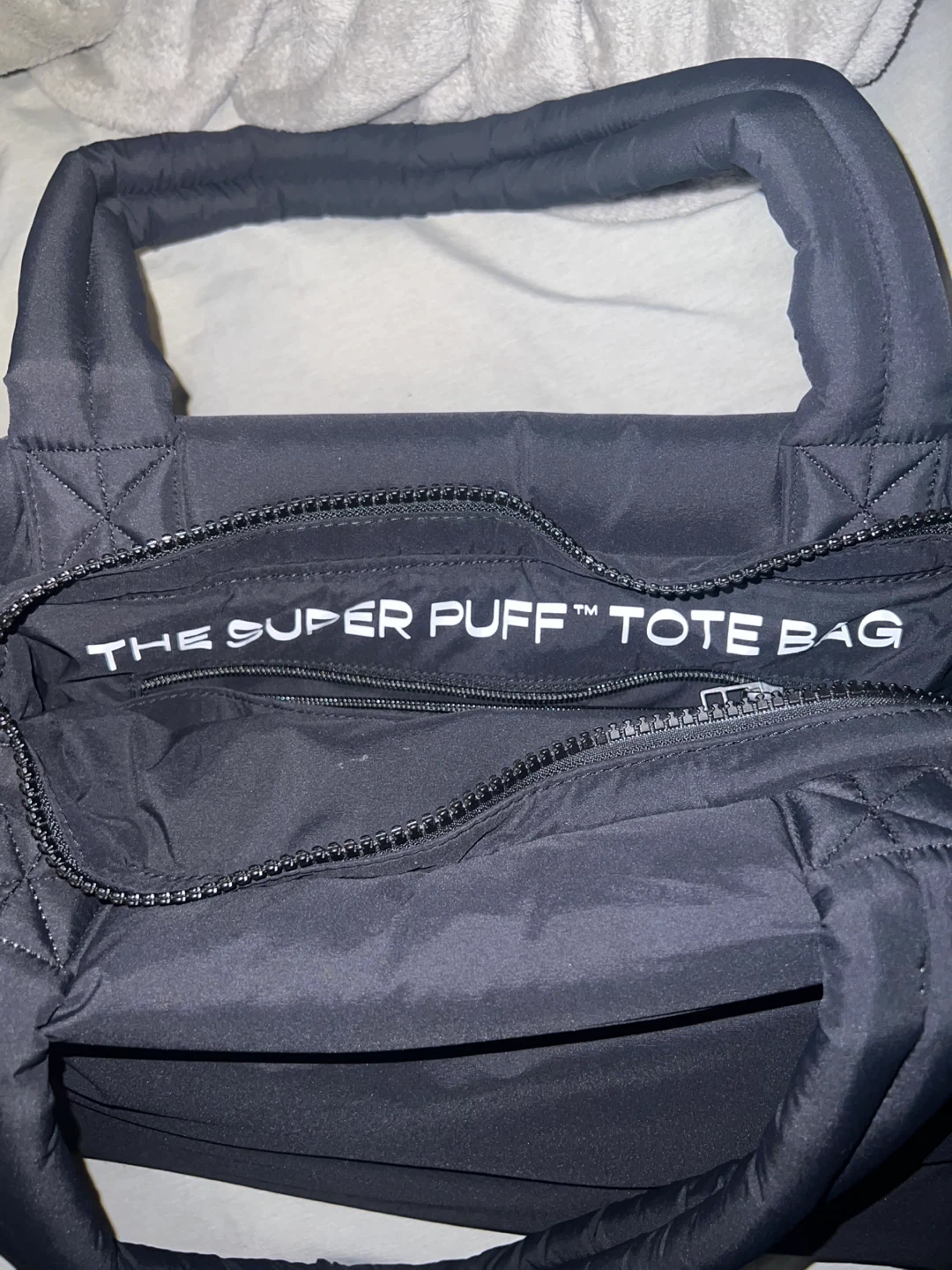 Selling an Aritzia Super Puff tote bag in black! It's in great condition and ready for a new owner. This stylish and practical tote is perfect for everyday use, with its lightweight and portable design. It's made of high-quality material and features a spacious interior. Feel free to reach out if you're interested