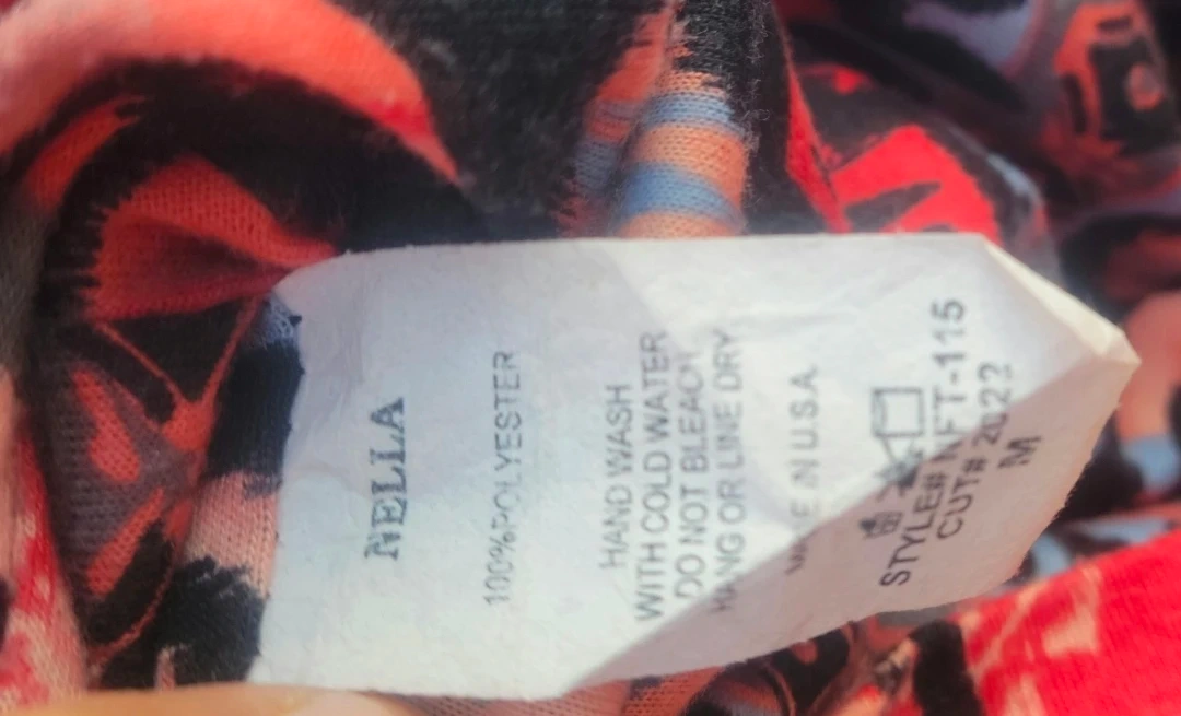Nella Fantasia mini skirt with a tribal-inspired print. Made from 100% polyester. Hand wash with cold water; do not bleach or line dry. Made in the U.S.A.